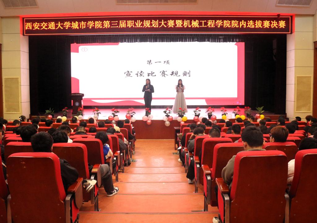 为引导大学生树立正确的职业观,科学规划职业生涯,提高就业创业能力。12月5日,机械工程学院于教二报告厅举办学校第三届职业规划大赛院内选拔赛决赛。出席本次活动的领导及嘉宾有:DISC知人善任顾问技术导师刘帅辛,华羿微电子股份有限公司人力资源经理刘艳艳、人才发展专员童小能,陕西长风新能源科技有限公司招聘经理肖甜甜,西安交通大学城市学院招生就业处刘洋,机械工程学院院长助理王丽丽、全体辅导员及2024级学生。活动由陈冠尔和周子婷同学主持。