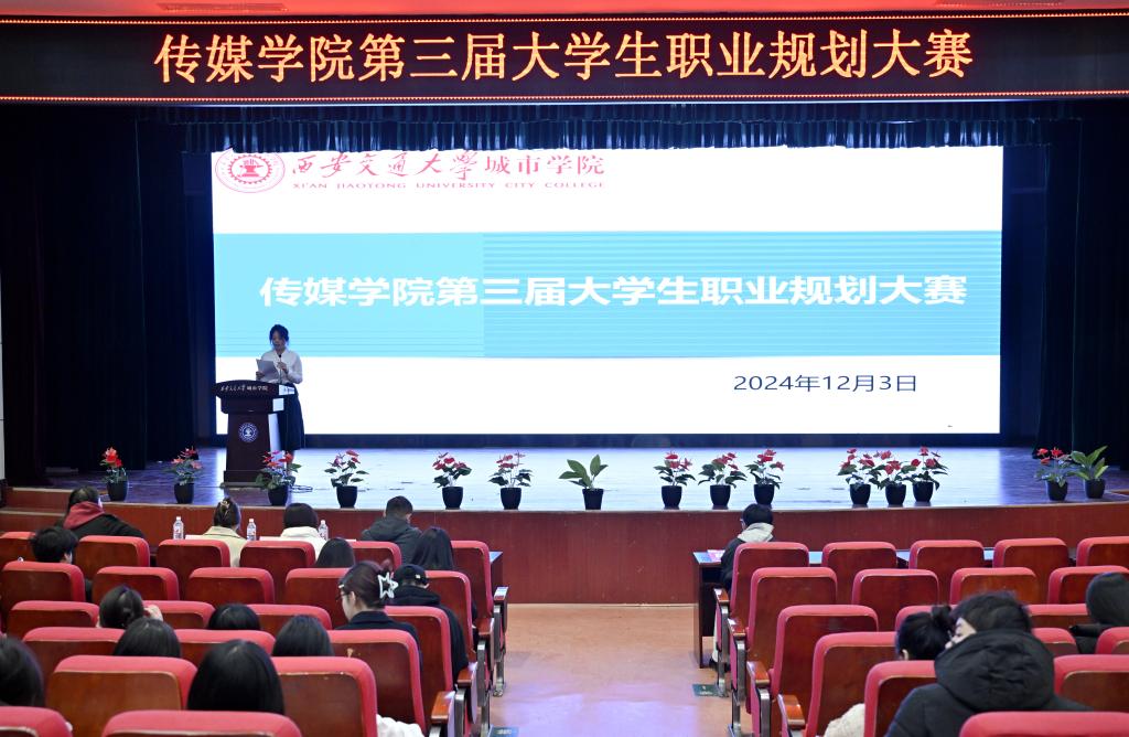传媒学院于12月3日在教二报告厅举办传媒学院第三届大学生职业规划大赛院内决赛,本次大赛分为成长组和就业组两大赛道,吸引了众多怀揣梦想与激情的学生积极参与,现场气氛热烈而充满朝气。担任此次比赛评委的是传媒学院院长助理刘敏涛、团工委书记陈欣、辅导员杨月、任瑾以及院学生会主席王钰洁。传媒学院学生代表参加活动,比赛由播主2401班刘慈主持。