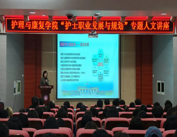 专家讲座——助力学生职业成长。为深化护理专业学生对职业发展路径的认识,我院开展主题为“护理职业发展与规划”的人文讲座。特邀西安交通大学附属儿童医院党委委员、护理教研室主任、评审办主任李荣为学生带来了一系列职业成长讲座。李荣通过分享多个成功案例,展示了职业规划在实际工作中的积极效果,鼓励在场的每一位护理学生要积极进行职业规划,为自己未来的职业道路打下坚实基础。