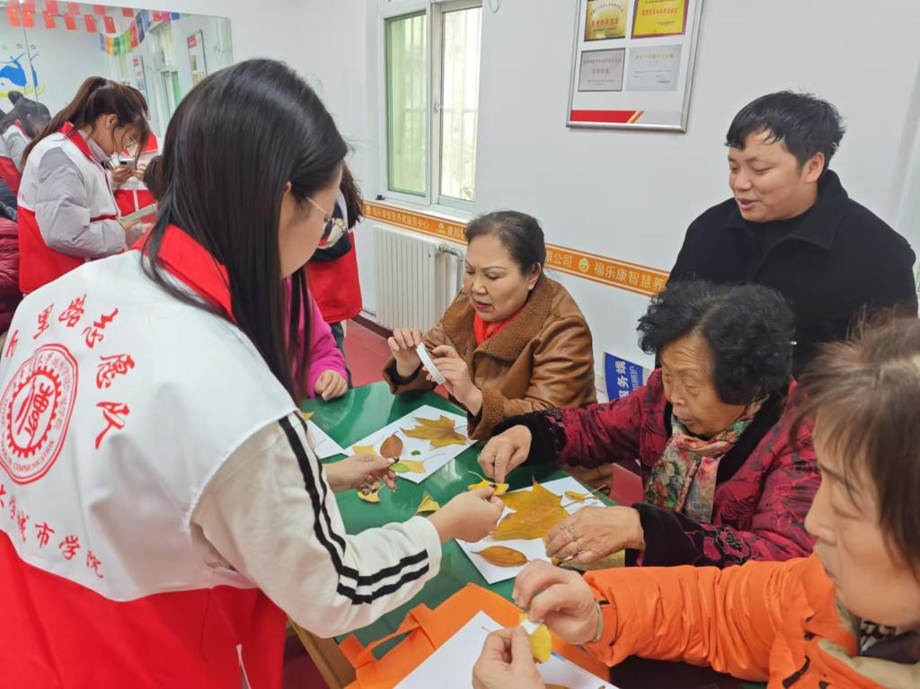 12月4日,传媒学院万里路志愿队联合陕西暖丰志愿服务队、西安市碑林区铁新社区为辖区内的老年人举办了一场“落叶贴纸画”活动,让冬日里的社区充满了欢声笑语和艺术的氛围。