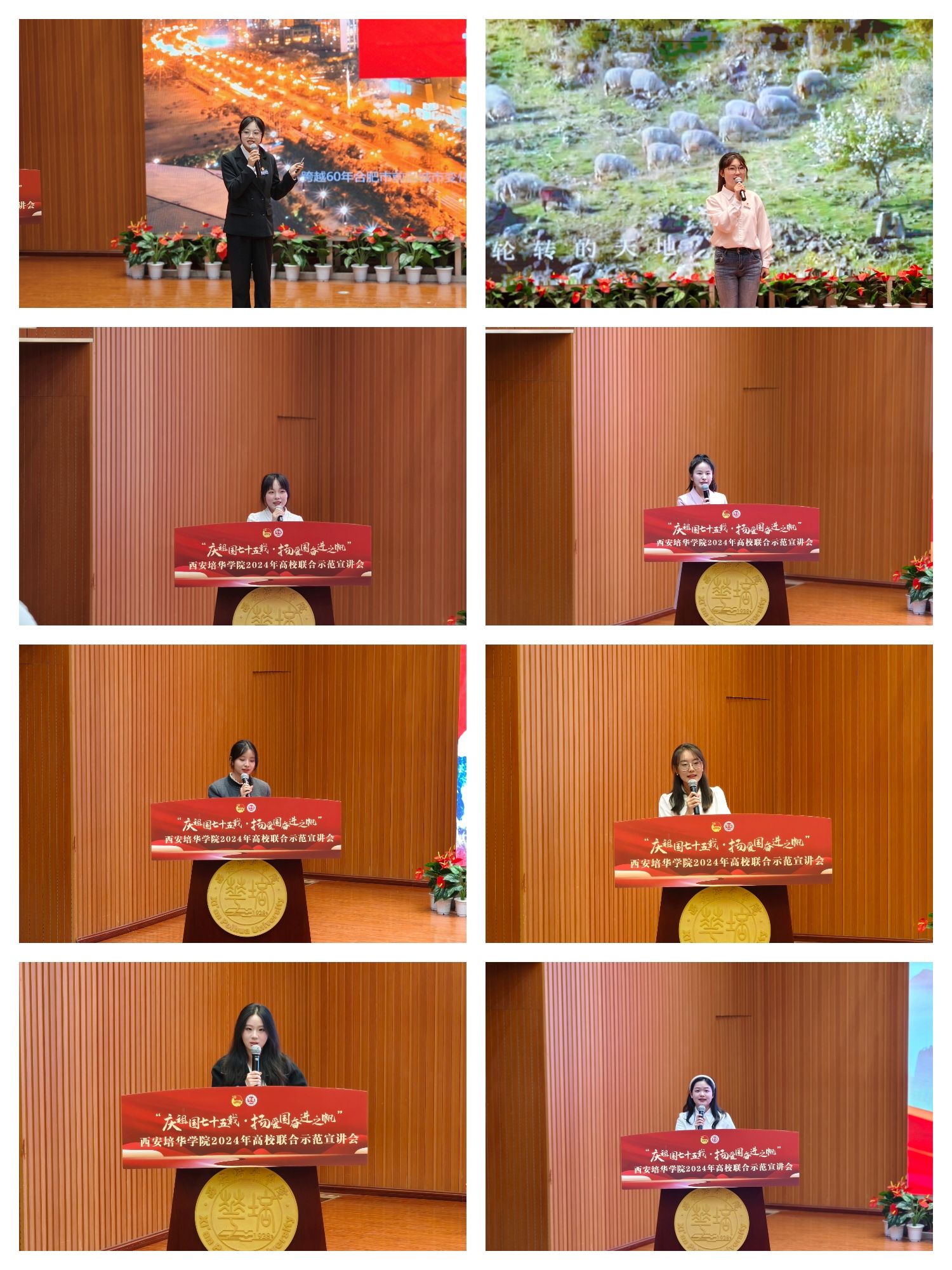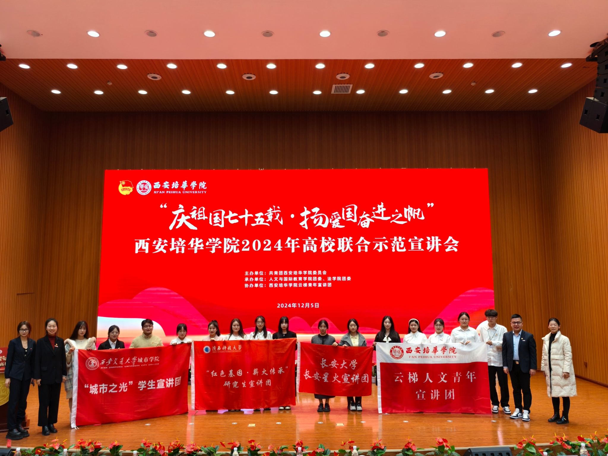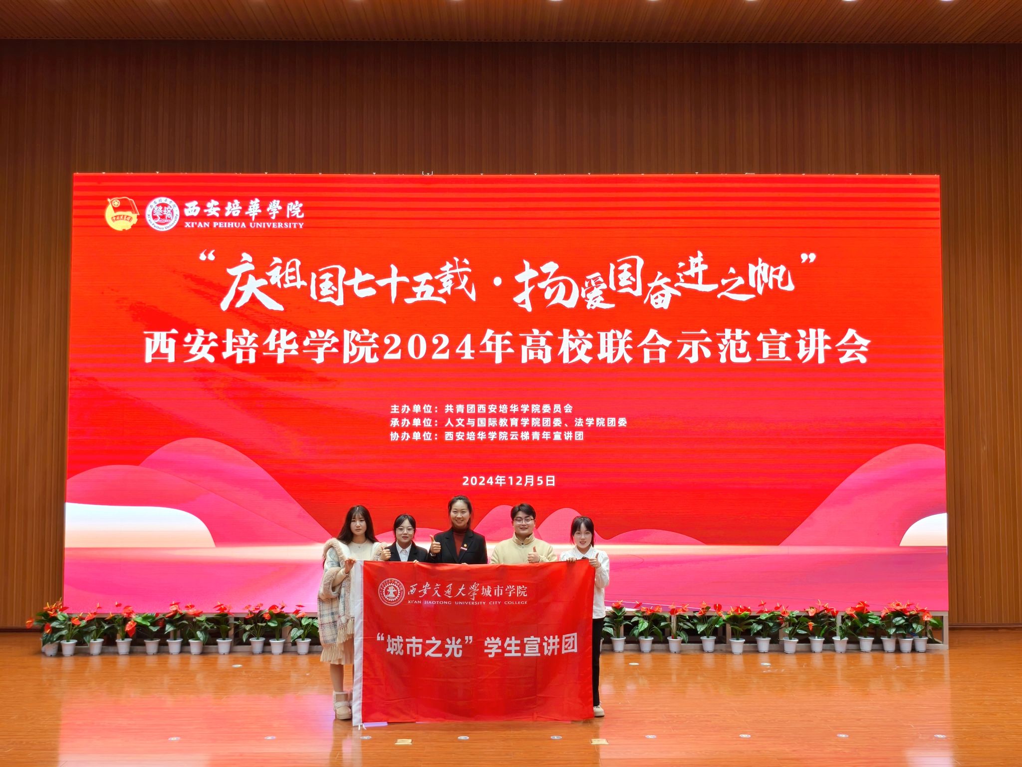 为庆祝新中国成立75周年,深入学习贯彻党的二十届三中全会精神,进一步激发广大青年的爱国热情,激励当代青年传承红色基因,勇担时代重任,12月5日,我校“城市之光”学生宣讲团受邀前往西安培华学院参与“庆祖国七十五载·扬爱国奋进之帆”高校联合示范宣讲会。据悉,参与本次活动的高校还有西北大学、长安大学、陕西科技大学、西安培华学院。
