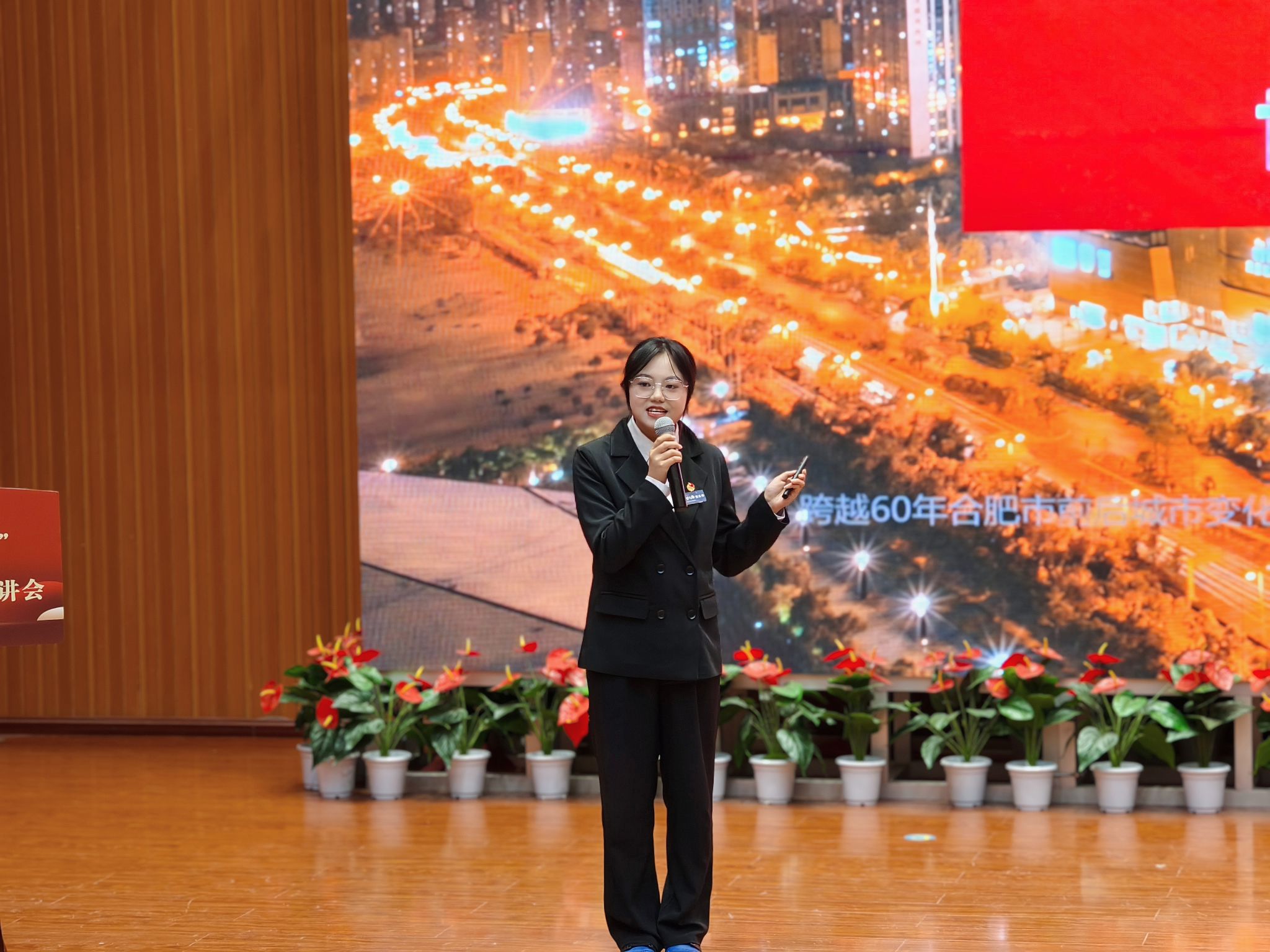 我校宣讲团副团长张乐华作了题为“青年逐梦现代化,科技挺膺新征程”的主题宣讲。她从合肥快速发展的案例出发,向大家阐述了科学家精神的内涵和实际意义,并通过华为“鸿蒙”系统的案例号召大家学习科学家精神,用智慧和勇气创造更加美好的未来,为中国式现代化发展注入青春伟力。