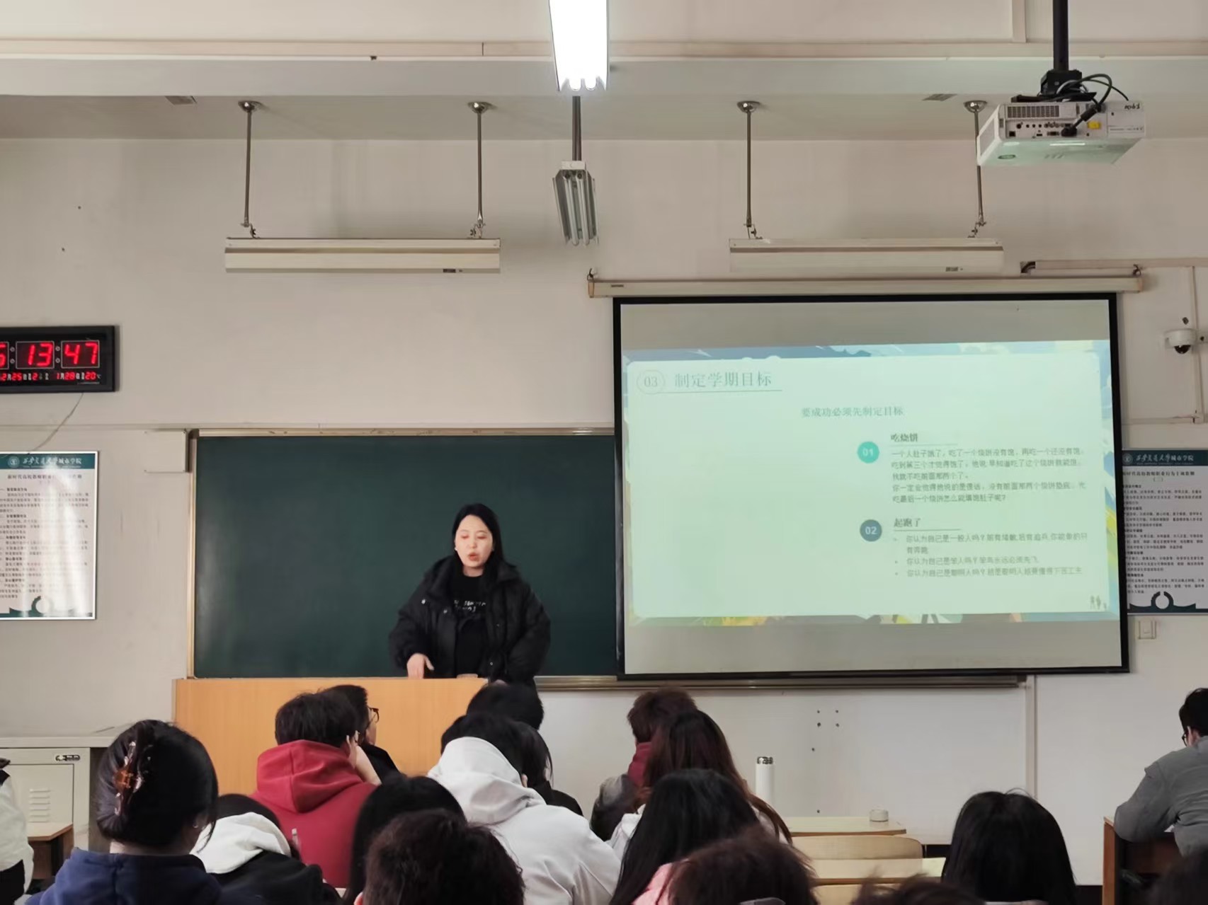 老师们对同学们在假期中的社会实践、学习成果表示肯定,要求同学们对标先进补短板,呼吁大家尽快收心归位,引导同学们及时调整作息,明确本学期的教学安排,上好开学“第一课”,积极参与课堂互动,主动交流,提高学习效率。同时,针对考研、就业等不同发展方向,提供相关建议和资源,引导同学们根据自身情况,明确目标,合理规划学业路径,着眼长远人生,把握竞争主动。