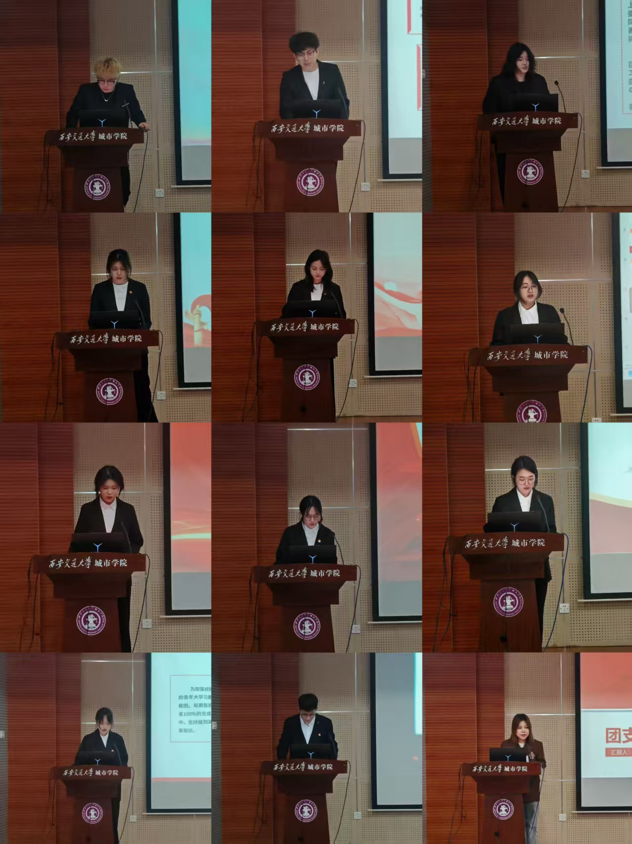 会上,来自2022级、2023级的16位团支部书记依次登台述职,围绕思想引领、组织建设、志愿服务、社会实践、特色品牌活动等方面系统总结年度工作。大二年级团支部重点展示了"青马工程"理论学习、主题团日、新生适应性帮扶等基础建设成果;大三团支部则突出"红色采风实践""乡村振兴墙绘""非遗传承志愿服务"等专业特色活动,彰显艺术学子服务社会的责任担当。