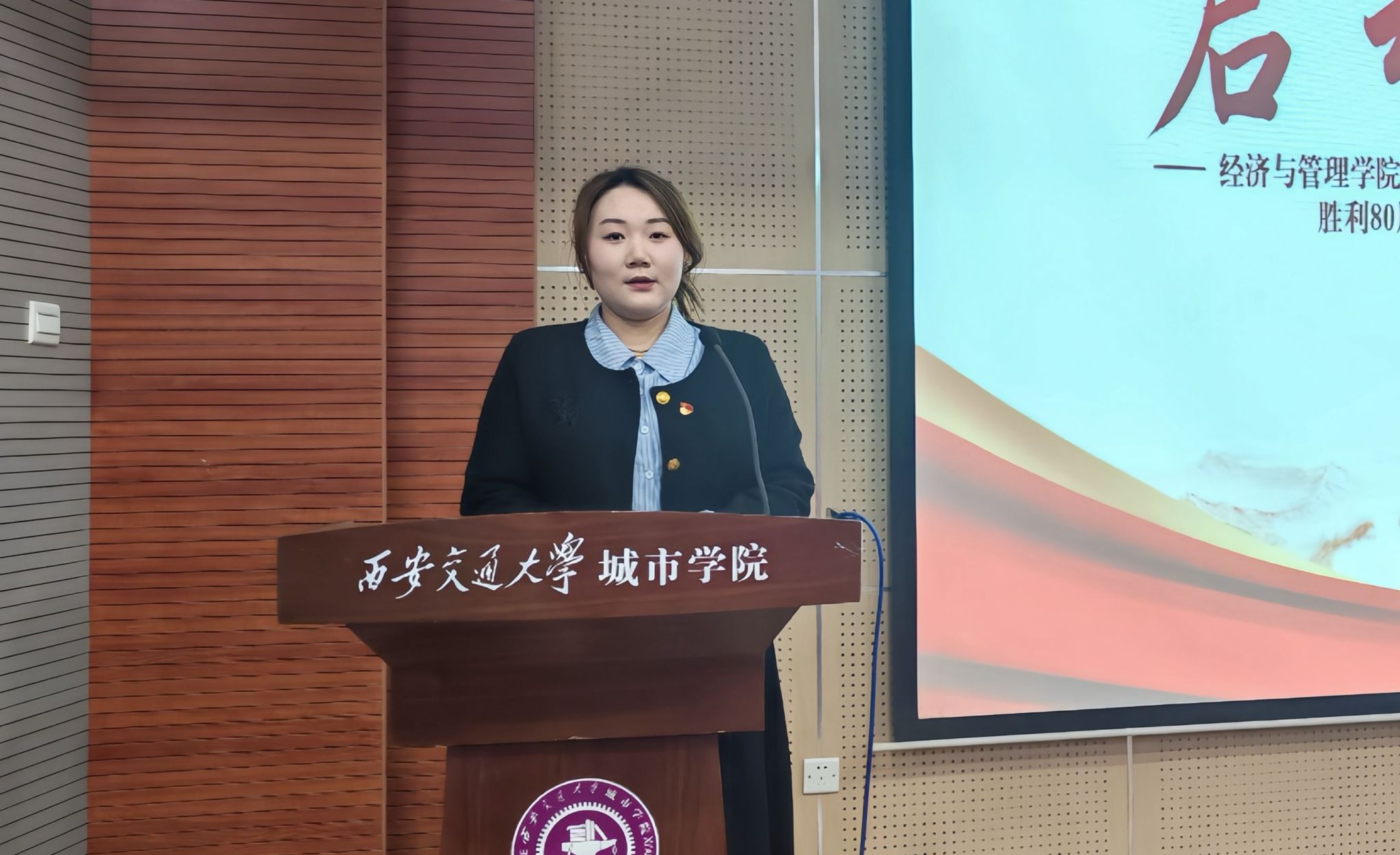 为引领广大学生铭记抗战历史,传承红色基因,厚植爱国主义情怀。经济与管理学院学生第一、第二党支部于4月2日在F100召开纪念中国人民抗日战争暨世界反法西斯战争胜利80周年系列活动启动仪式。学生第一党支部书记刘健,学生第二党支部书记李璐,团工委书记柯智航,学生第一党支部组织委员康轲岚、宣传委员张天源,学生第二党支部组织委员刘连宏,辅导员代表拓桦真,全体党员、发展对象、入党积极分子及全体团学干部参与,活动由冯悦主持。