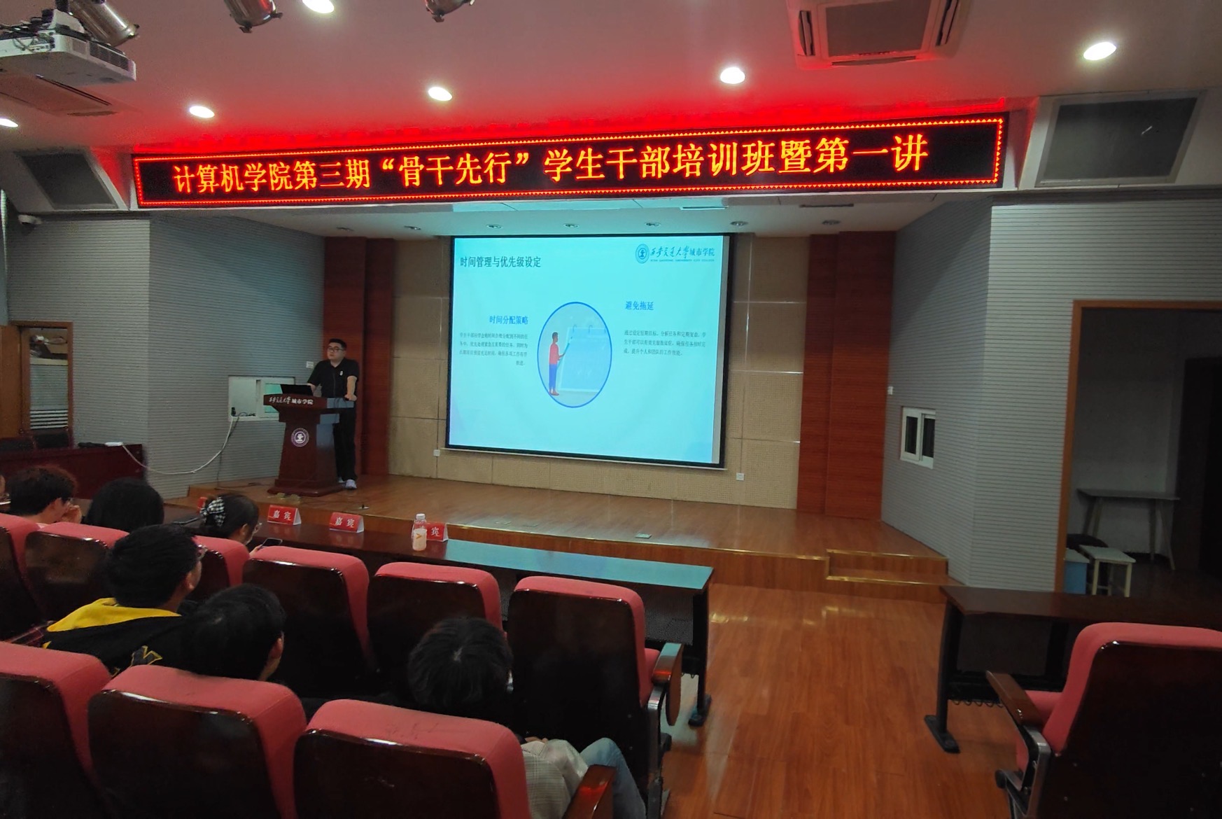 近日,计算机学院举办了第三期“骨干先行”学生骨干培训班活动。活动面向2023级、2024级150余名班级学生骨干,旨在培养班级学生骨干坚定的信仰、勇于开拓的精神以及积极投身实践的能力。