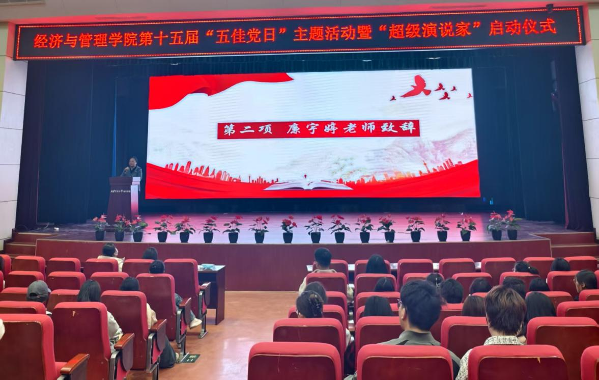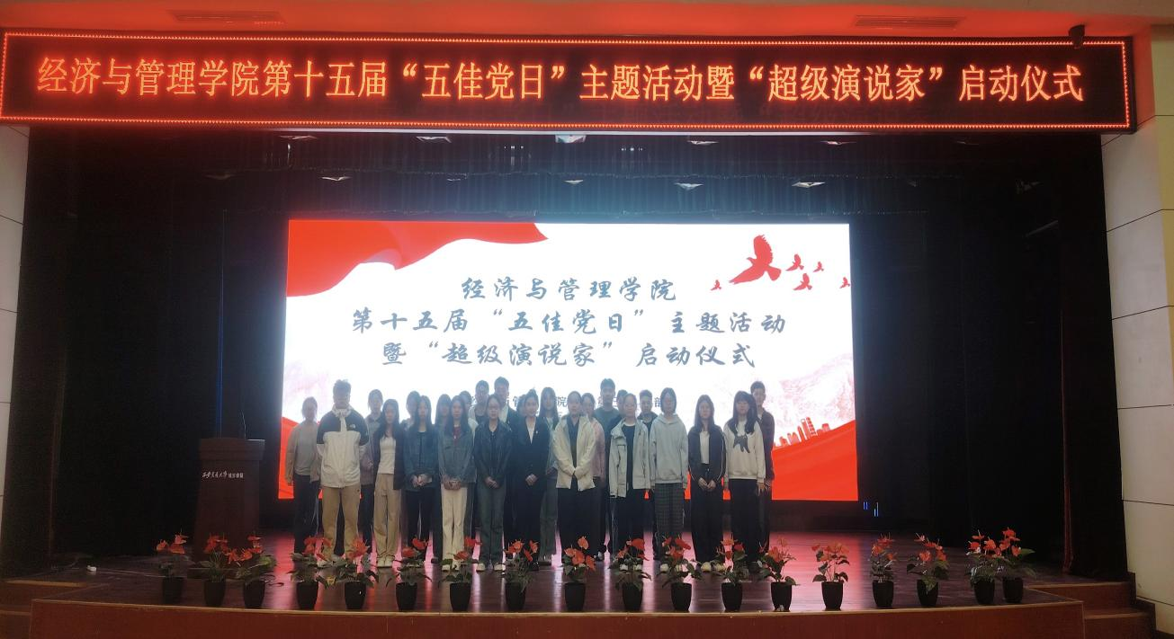 为提升学生党员的党性修养,增强党组织的凝聚力和战斗力,激励学生党员在新时代背景下勇担使命,经济与管理学院学生第三党支部于4月11日在教二报告厅举行第十五届“五佳党日”主题活动暨“超级演说家”启动仪式,经济与管理学院院长助理廉宇婷、团工委书记蒋美一帆、学工办杨静怡参加活动,本次活动由学生党员毕千惠主持。