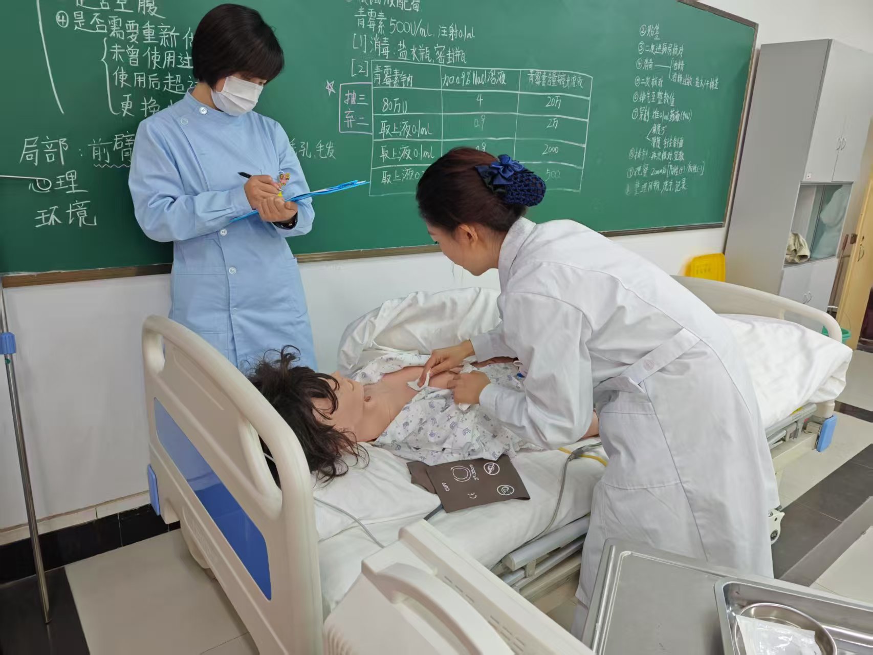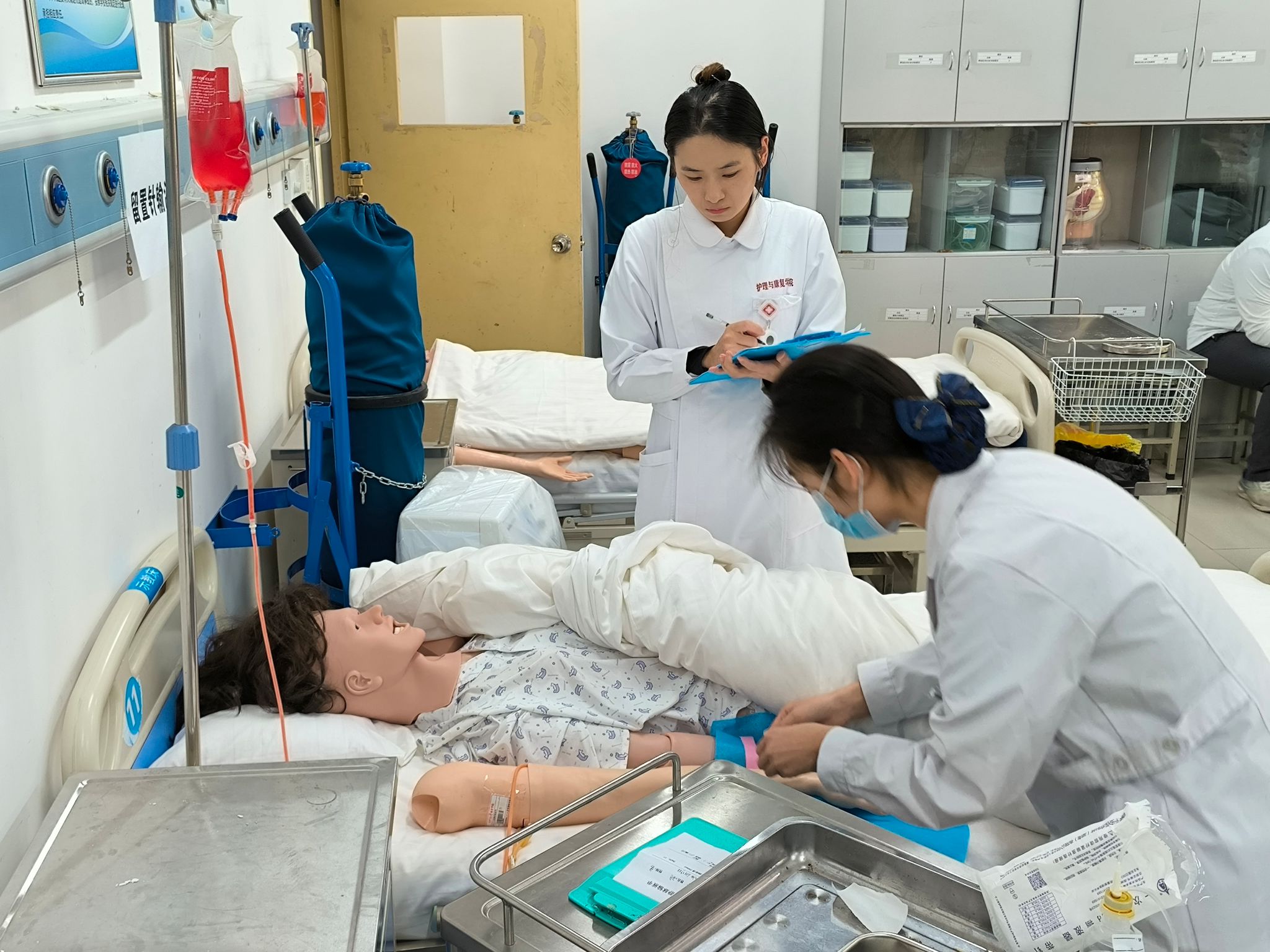 本次选拔赛分为理论与实操考核两大环节。理论考核采用选择题形式,全面覆盖护理专业核心课程知识,检验学生对专业理论的理解与运用能力。实操考核则设置“院内心肺复苏”“心电监护”“留置针静脉输液”三项临床核心技能项目,参赛学生通过抽签形式确定考核内容,要求选手在规定时间内完成标准化操作流程,全面检验学生临场应变能力与操作规范性。比赛现场秩序井然,选手们沉着冷静、动作娴熟,展现出扎实的专业功底和严谨的职业素养。