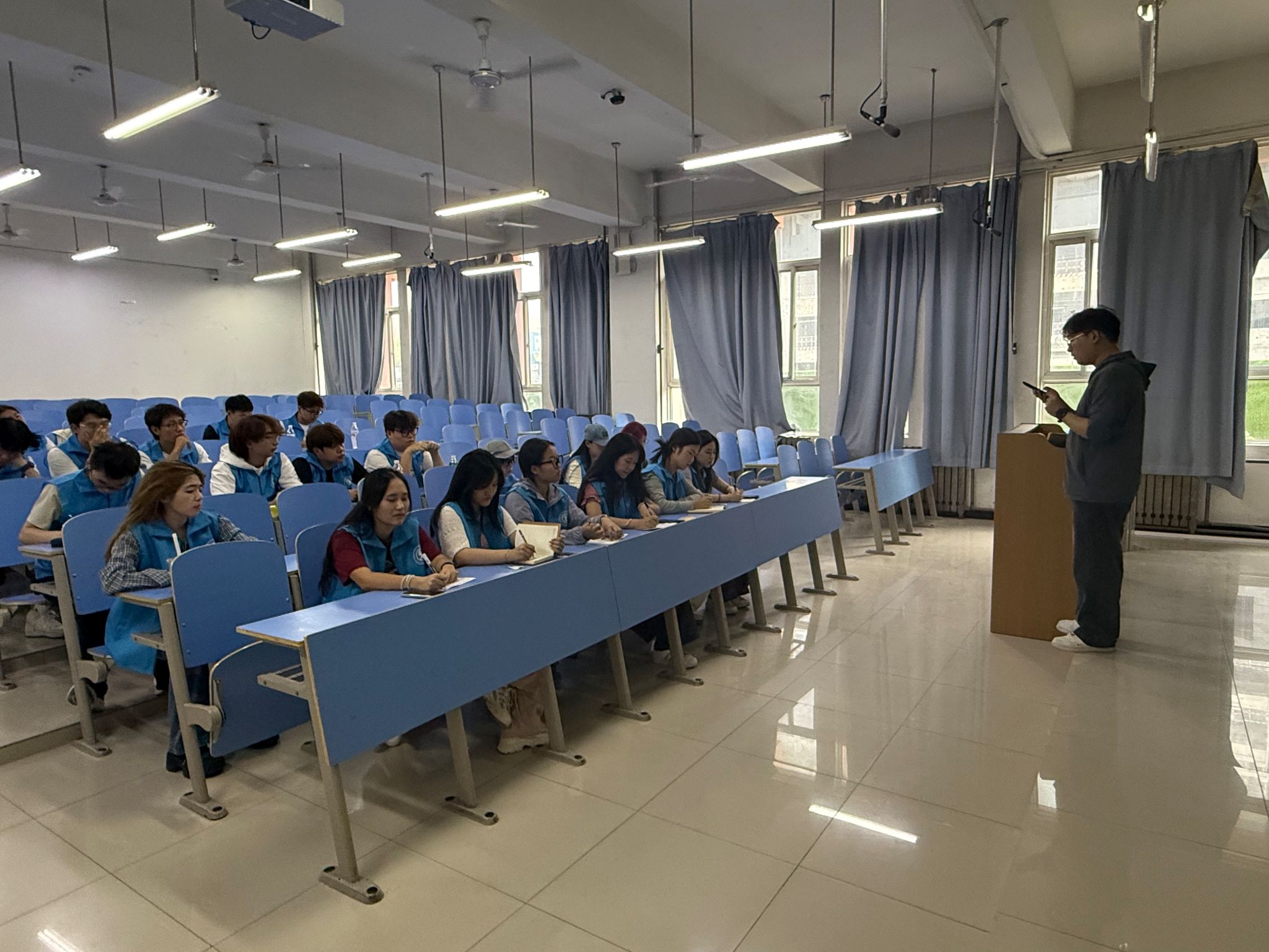 会上,团工委书记柯智航详细介绍了新生报到注册、财务费用缴纳、入住宿舍、体检等迎新工作的流程与具体安排。强调了志愿者们要在服务过程中要始终保持热情、耐心、细心,积极主动地为新生和家长提供帮助,对在迎新过程中可能出现的问题进行解答,确保每一位志愿者都清楚了解自己的工作职责。