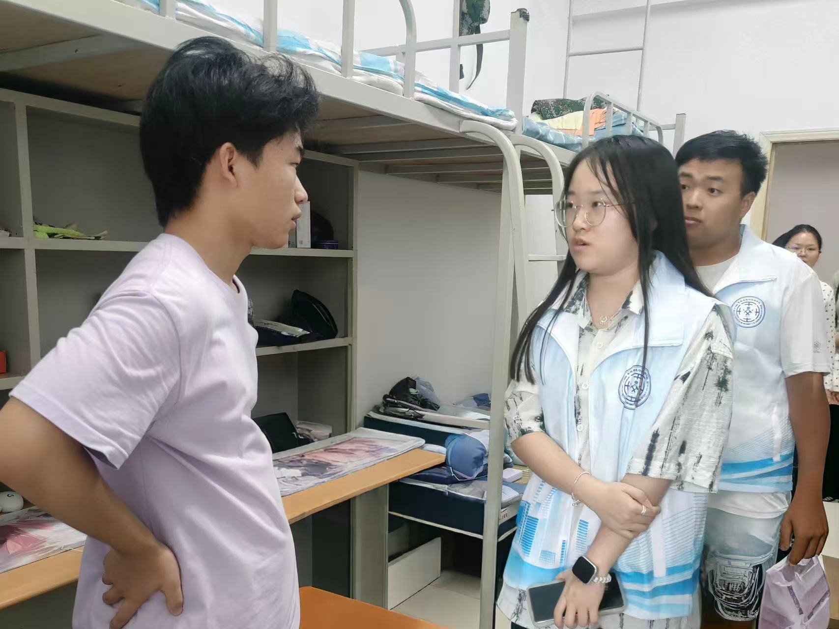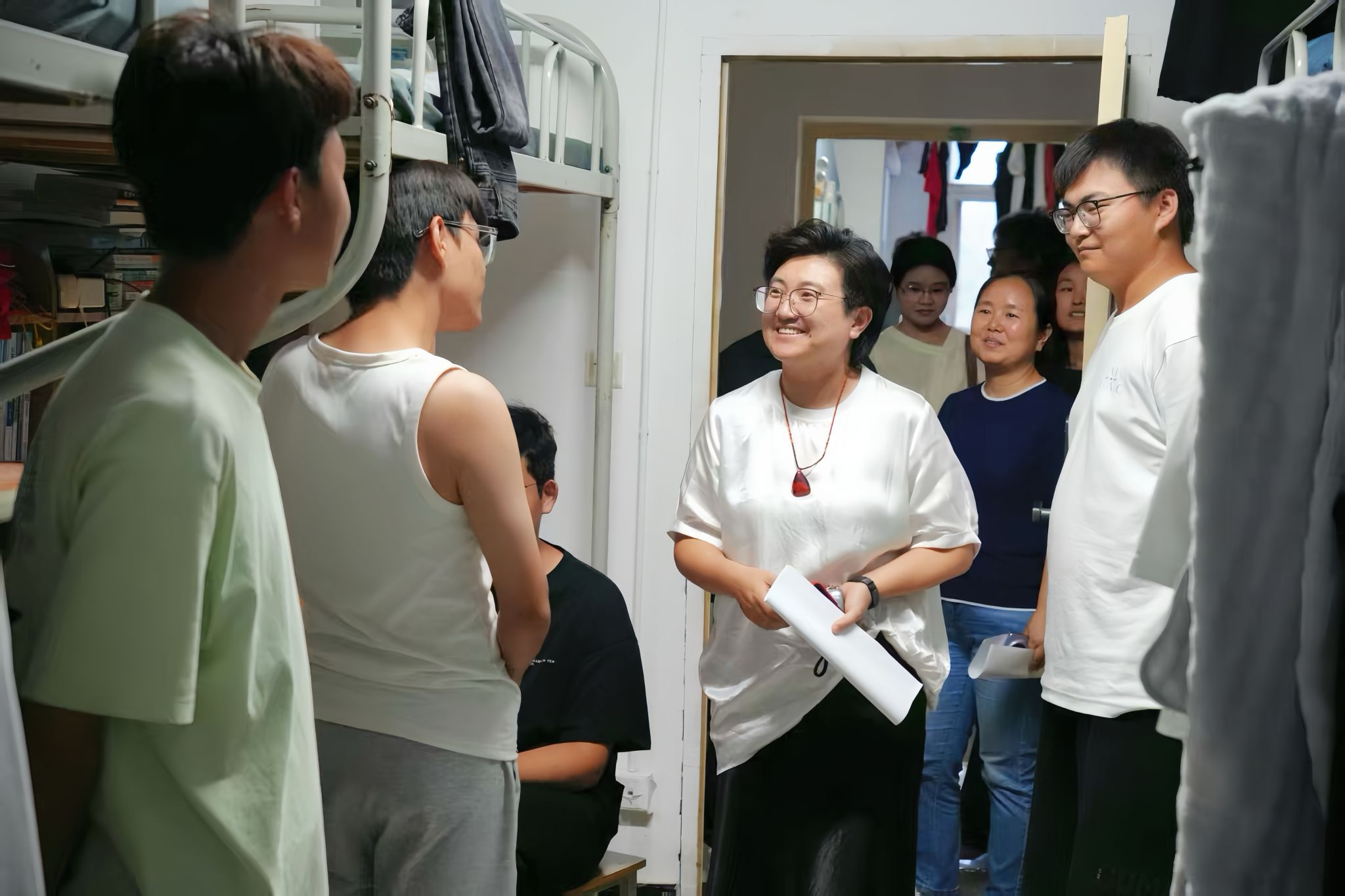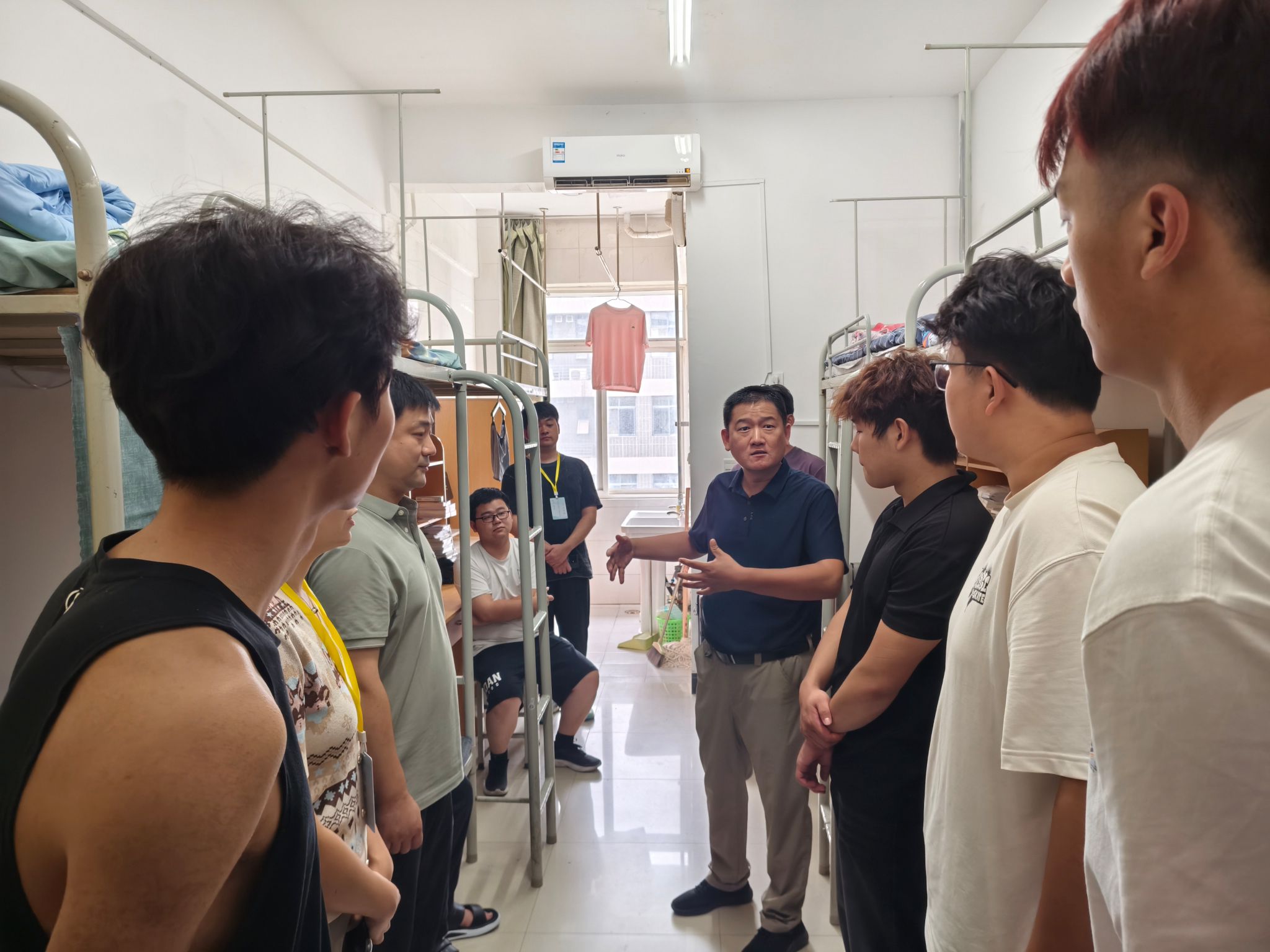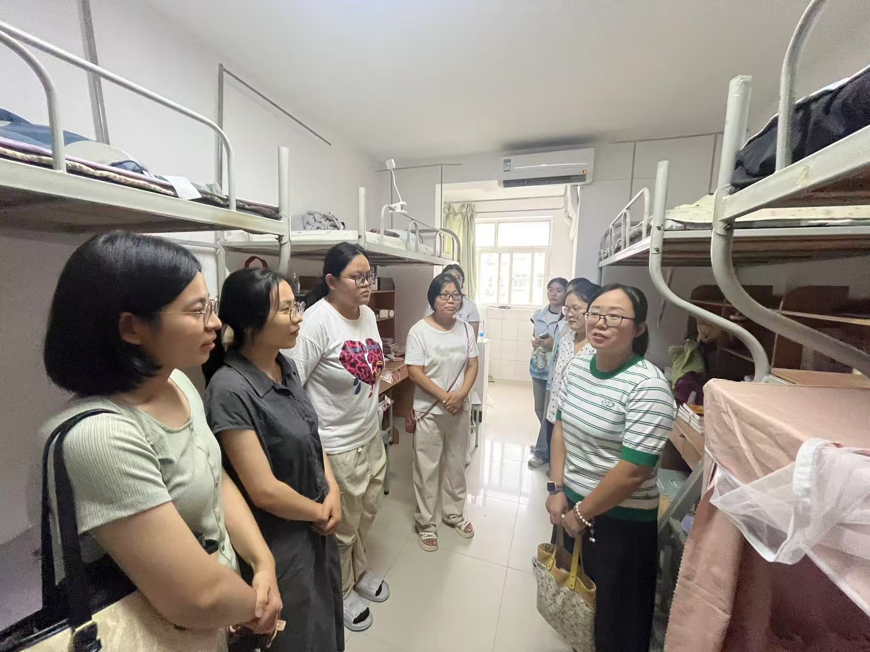 8月24日下午,学院组织开展新生宿舍走访。姚全珠院长、教师及新生辅导员一行深入新生寝室,问候新同学,了解入住情况与实际需求。老师们嘱咐大家注意身心健康,学会压力管理,并细致检查宿舍安全与卫生,提醒遵守住宿规定,鼓励同学之间团结友爱,共同营造良好的学习和生活氛围。