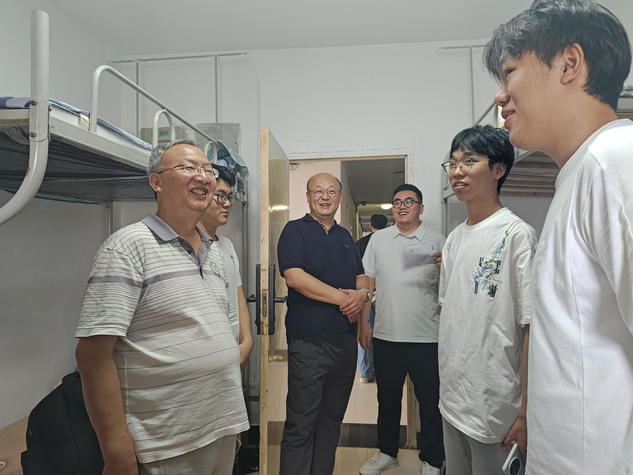 走访过程中,学院领导与老师们亲切走进每一间宿舍,与新生们面对面交流。在学习方面,详细询问大家对课程安排的了解程度、是否适应大学学习节奏,并叮嘱新生要尽快制定学习计划,提前做好学业规划;在生活上,仔细查看宿舍居住环境,关心同学们的饮食、作息情况,耐心解答大家关于宿舍设施使用、校园生活服务等方面的疑问;同时,老师们还叮嘱同学们要注意宿舍安全与卫生,与室友友好相处,共同营造温馨和谐的宿舍氛围。