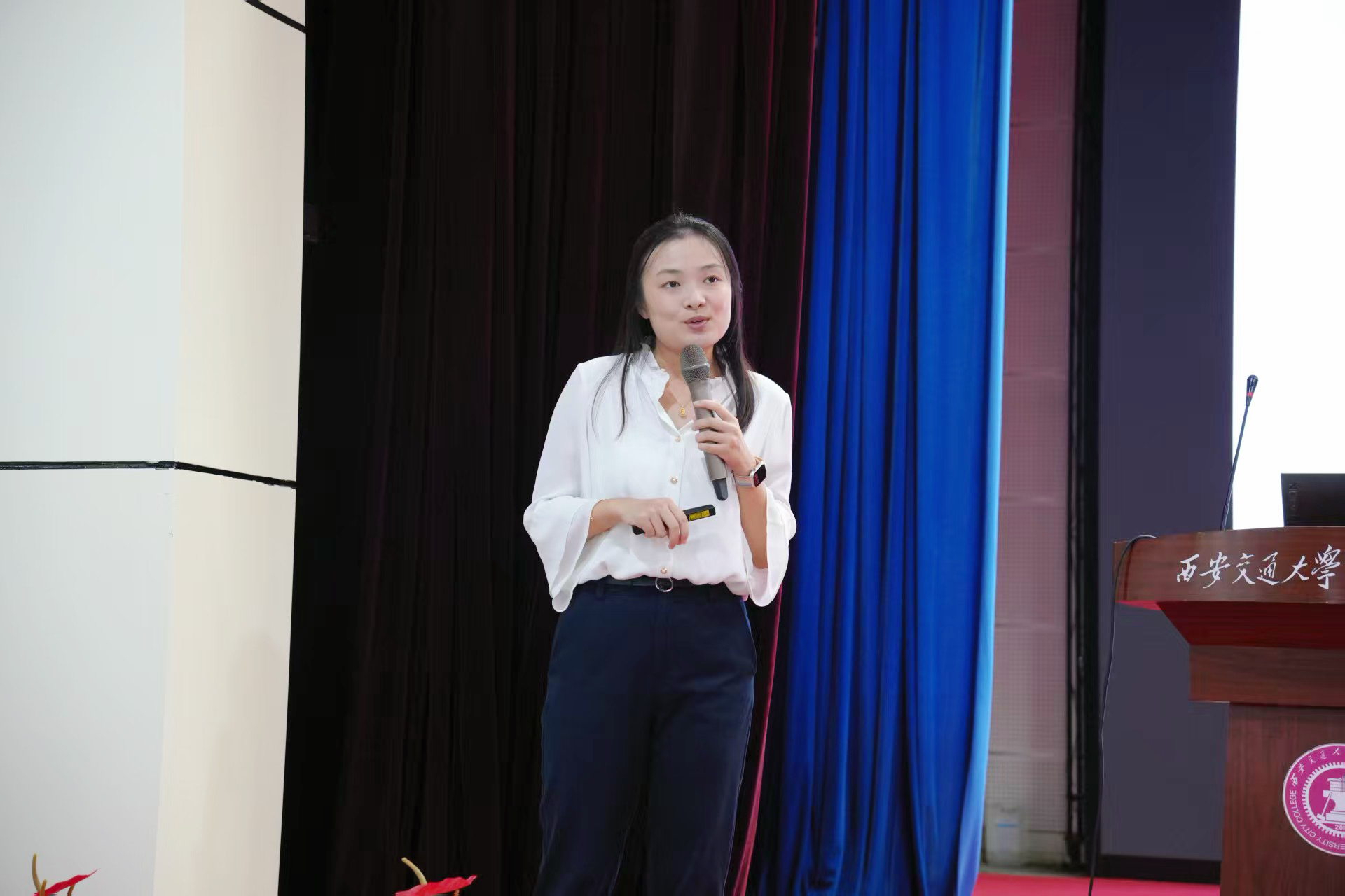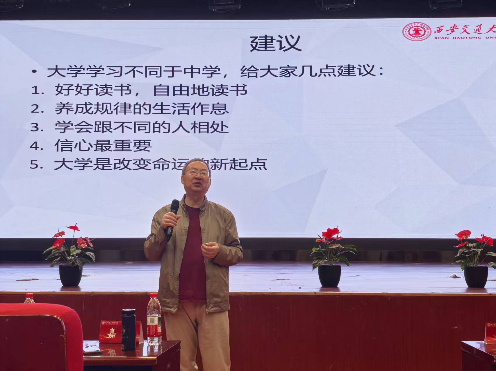 校友代表、西安科技大学研究生王钊(原机械设计制造及其自动化专业)分享了学习需注重日常积累、紧跟课堂、勇于提问和质疑的心得,并鼓励新生积极参加竞赛与社团活动。校友赵思远围绕“选择比努力更重要”提出建议,倡导外向型同学多参与社会实践,内向型同学勤于总结反思,弘扬交大西迁精神,在实践中培养创新与批判思维。