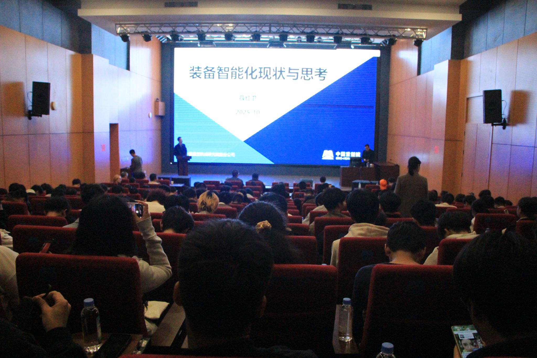 参观结束后,重研院党委委员、首席信息官、副总工程师薛红卫教授为全体师生带来了题为“装备智能化现状与思考”的专题讲座。薛教授结合自身丰富的行业经验与深厚的技术积淀,从全球装备制造业的发展趋势切入,详细解读了我国装备智能化的发展现状、核心技术瓶颈以及未来突破方向。讲座内容兼具专业性与前瞻性,引发了同学们的强烈共鸣,现场互动交流氛围热烈。薛教授对青年学子提出了殷切期望,鼓励大家立足专业、深耕细作,为我国装备制造业的高质量发展贡献青春力量。