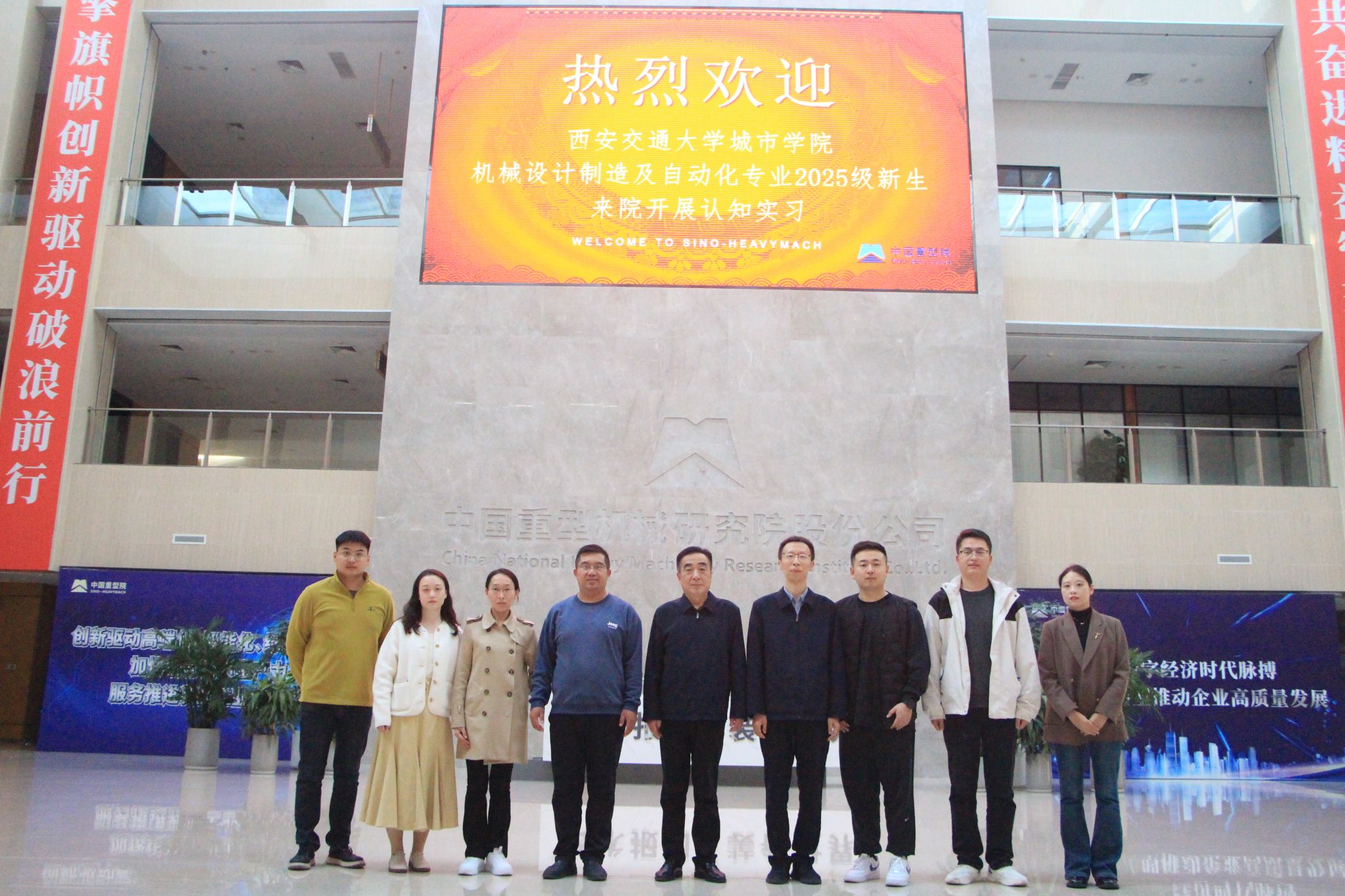 为进一步深化校地合作,帮助2025级机械设计制造及其自动化专业学生建立对专业领域的直观认知,搭建理论与实践的沟通桥梁,构建贯穿大学四年的实践教学体系,促进专业内涵建设,10月15日-17日,智能制造与新能源学院副院长王国平、行政人事部部长助理杨耀聪、智能制造与新能源学院院长助理王丽丽带领学院新生班主任、辅导员一行组织331名新生赴中国重型机械研究院股份有限公司开展机制专业认知教育活动,让学子们近距离感受重型装备与智能制造的硬核实力。