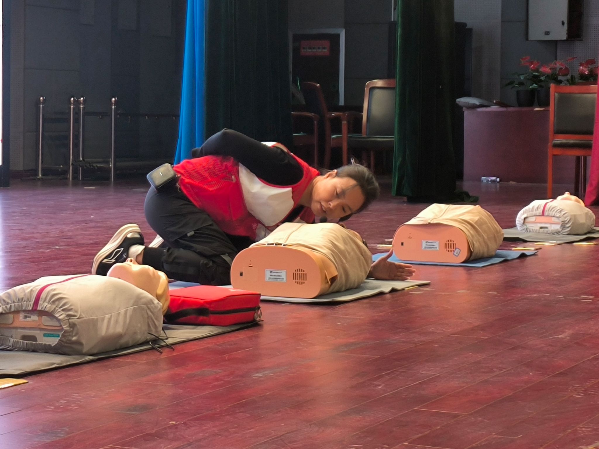 在实操演练环节,师生们在培训师的指导下,利用模拟人、AED训练机、绷带、三角巾等教具进行实际操作,练习心肺复苏、人工呼吸、创伤包扎等关键技能。培训师对操作细节逐一纠正与规范,确保每位学员都能准确掌握技术要领。现场学习氛围浓厚,师生积极参与互动。大家普遍反映,实操训练有效加深了对理论知识的理解,提升了实际操作的信心。