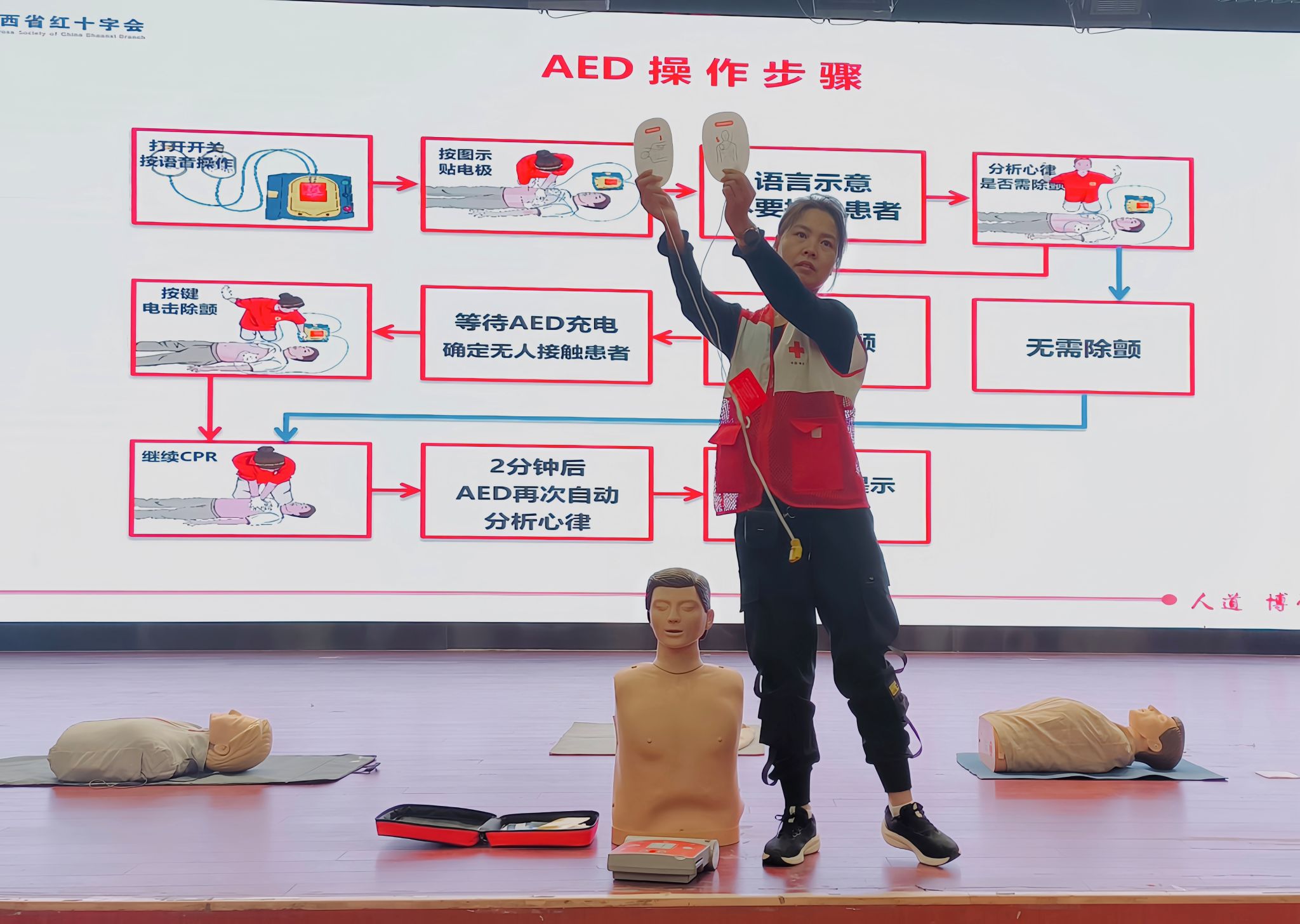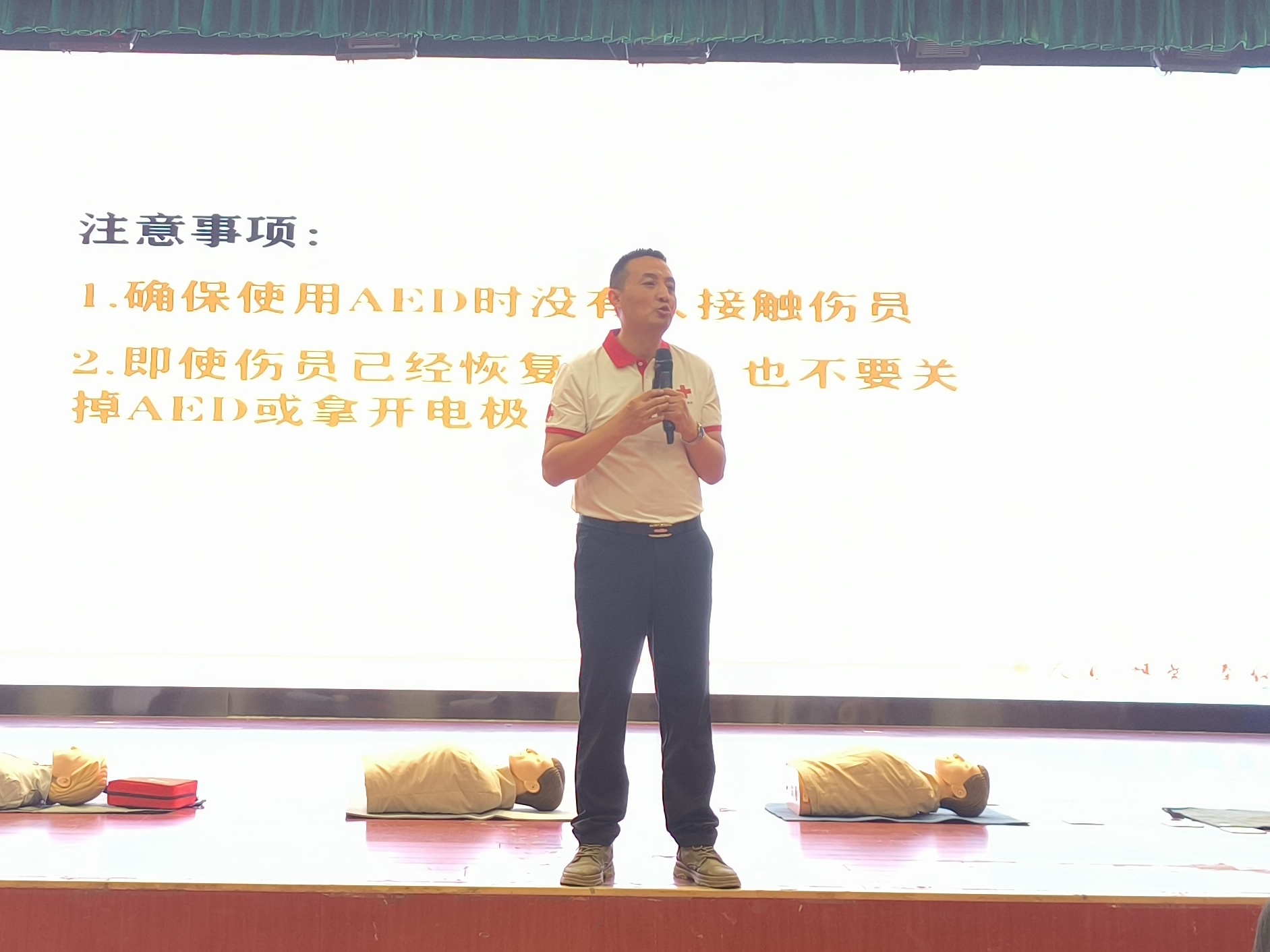 此次培训覆盖广泛、内容实用,旨在通过系统化、专业化的教学,帮助参训师生掌握基本应急救护技能,在关键时刻能够挺身而出、科学施救,为生命争取宝贵的救援时间。培训采用“理论讲解+实操演练”相结合的模式,为师生呈现了一堂生动而严谨的应急救护课程。理论环节重点讲解了心肺复苏(CPR)的适用场景、操作流程与注意事项,自动体外除颤器(AED)的使用方法,以及突发事件现场处置的基本原则。