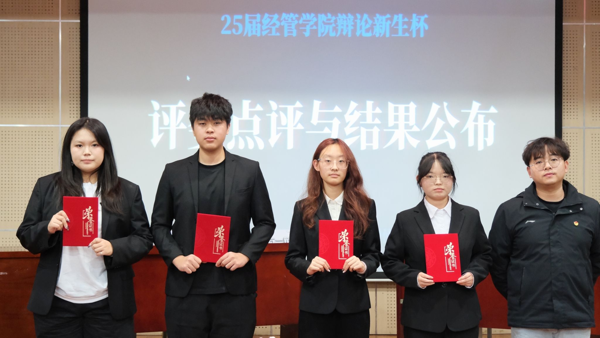 比赛伊始,正反双方开篇立论条理清晰,明确己方立场。攻辩环节中,双方辩手反应敏捷,犀利的提问与巧妙的反驳引得现场掌声不断。自由辩论阶段,双方更是引经据典、逻辑缜密,将比赛氛围推向高潮;结辩环节,双方四辩沉稳总结,既梳理了全场观点,又深化了辩题内涵,展现出扎实的思辨功底与团队协作能力。最终红高粱模特队的田芷葳、滑鑫娱、王书悦、胡宇光获得冠军,胡宇光获得“最佳辩手”称号。赛后,学院团工委书记柯智航对本次比赛进行总结发言。他肯定了两支队伍的精彩表现,鼓励全体新生将赛场上的思辨精神融入日常学习与生活,在探索与思考中找准方向,成长为兼具独立思想与社会责任感的经管人才。