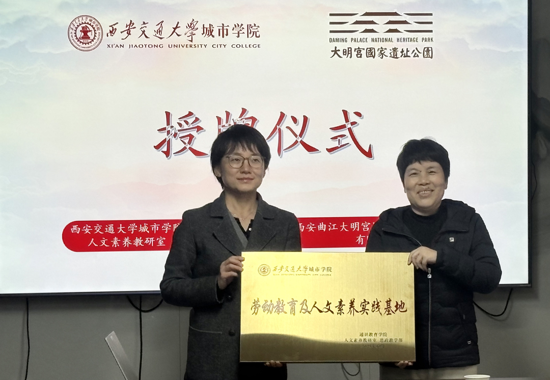 10月24日下午,我校与大明宫国家遗址公园合作共建的“劳动教育与人文素养实践基地”授牌仪式在大明宫国家遗址公园举行。此次活动由通识教育学院人文素养教研室组织。