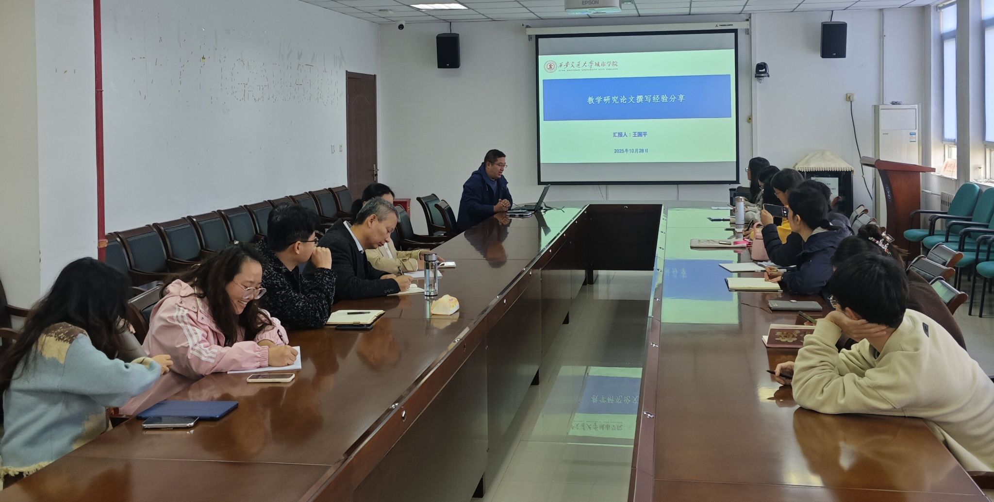 王国平以“教学研究论文撰写经验分享”为题做经验分享报告。报告围绕教学研究论文的选题、论文构架及各部分撰写方法、论文撰写的其他注意事项及期刊推荐等三个方面进行了详细介绍。为中青年教师在立足课堂教学实践进行教学研究论文的规范撰写、质量提升与发表方面提供了有益的参考。