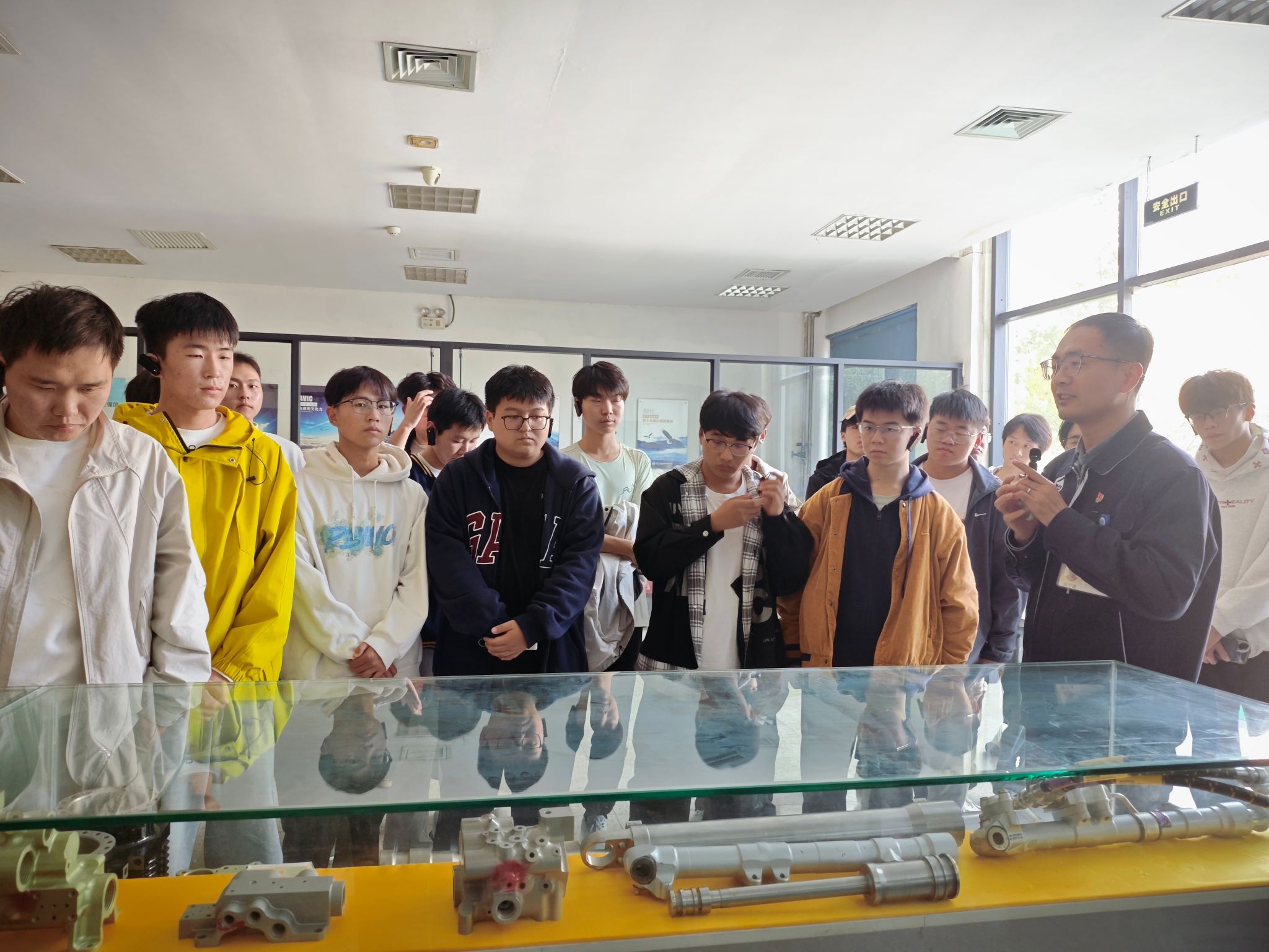 随后,师生在负责人带领下参观核心生产车间、设计中心及产品展示厅。现代化车间内,自动化生产线高效运转,精密设备与严格质控流程尽显航空制造的严谨。技术人员详解产品全流程,并针对“航空零部件加工精度”“新材料应用”等问题细致解答,让抽象理论与实际场景深度结合。在近距离参观航空产品生产线的过程中了解了企业科技创新成果,更加深刻地感受了“大国重器”背后的精密制造、工匠精神和“航空报国”使命。