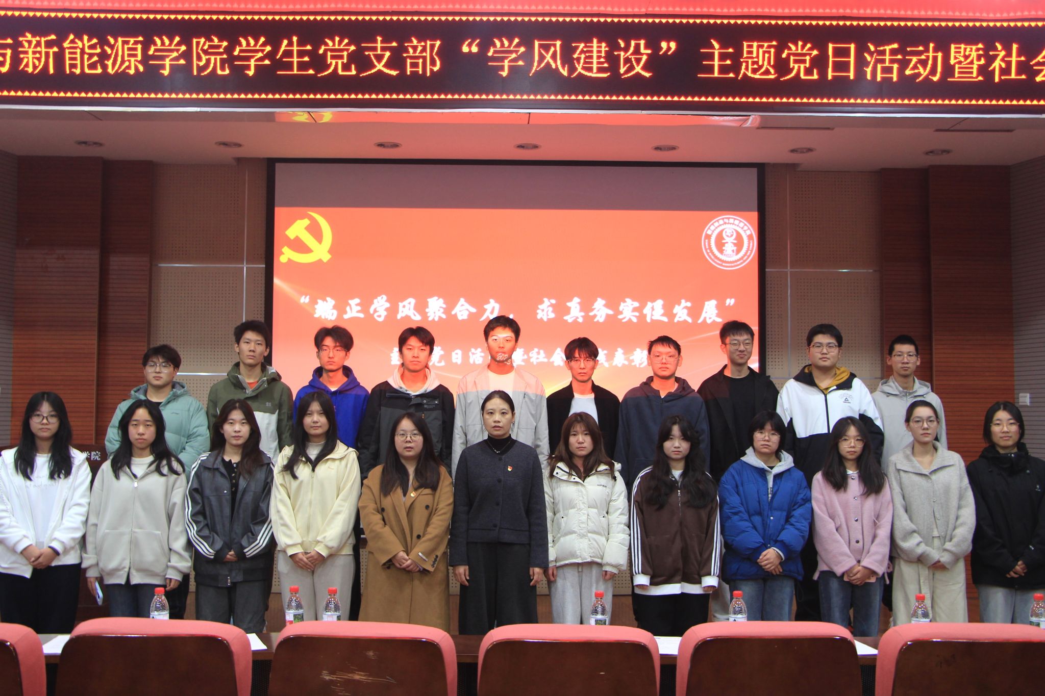 为强化学风建设、凝聚发展力量、激励学生党员担当作为,11月3日,智能制造与新能源学院学生党支部开展“端正学风聚合力,求真务实促发展”主题党日活动暨社会实践表彰大会。学院院长助理兼学生科科长、党支部书记王丽丽,学生党支部组织委员史晓薇,宣传委员童治杰,党支部全体党员及入党积极分子参与会议,会议由张元婕主持。
