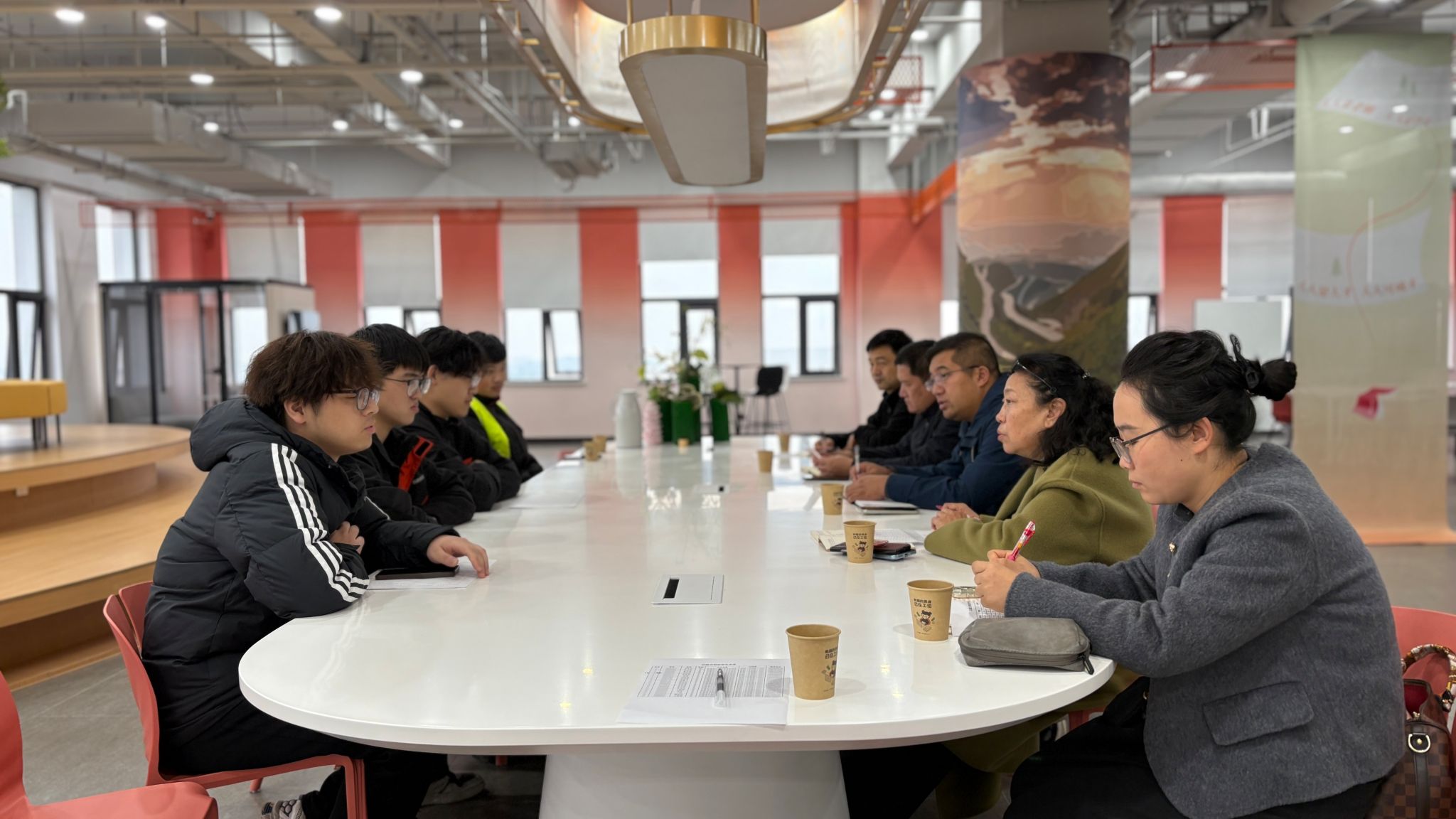 调研期间,学院领导还与在企吉利班学生代表进行座谈,深入了解学生的实习情况。王国平和王小丽老师根据学生实习岗位特点,与企业导师、参会学生共同商定了毕业设计课题,确保课题内容与工程实践紧密结合。