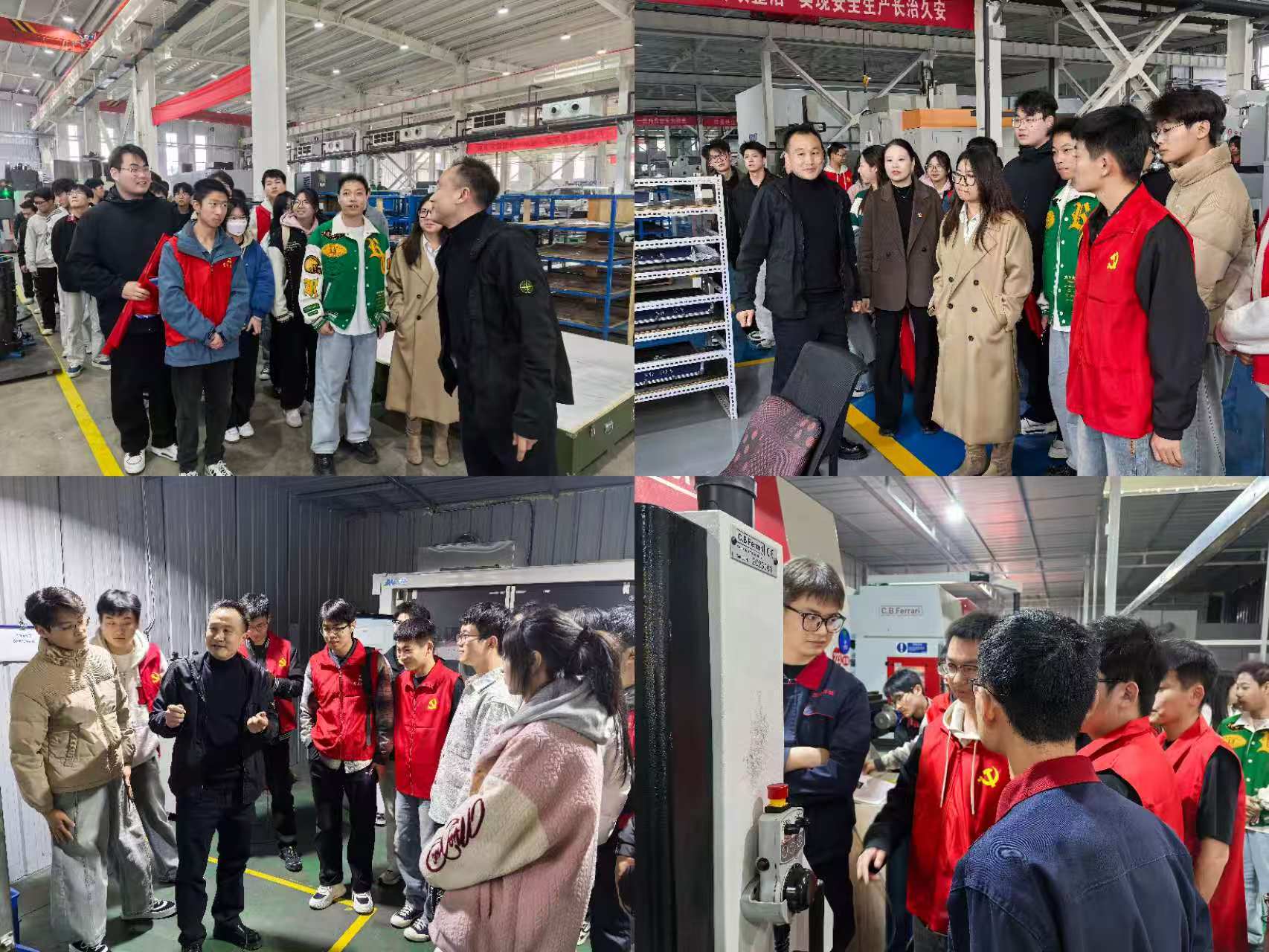 参观队伍深入生产车间一线。宽敞明亮的现代化厂房、高度自动化的生产线、精密高效的数控机床以及忙碌而有序的工业机器人,构成了智能制造的真实图景。企业工程师为同学们详细讲解了从原材料到成品的整个精密制造流程,重点介绍了数字化设计、智能加工中心、在线检测等关键环节。同学们围绕在工程师身边,结合自己在校所学的《机械设计制造基础》《数控技术与编程》《机械工程测试技术》等专业知识,就生产工艺、技术难点、质量控制等问题踊跃提问,工程师一一给予了耐心细致的解答,现场学习交流气氛热烈。