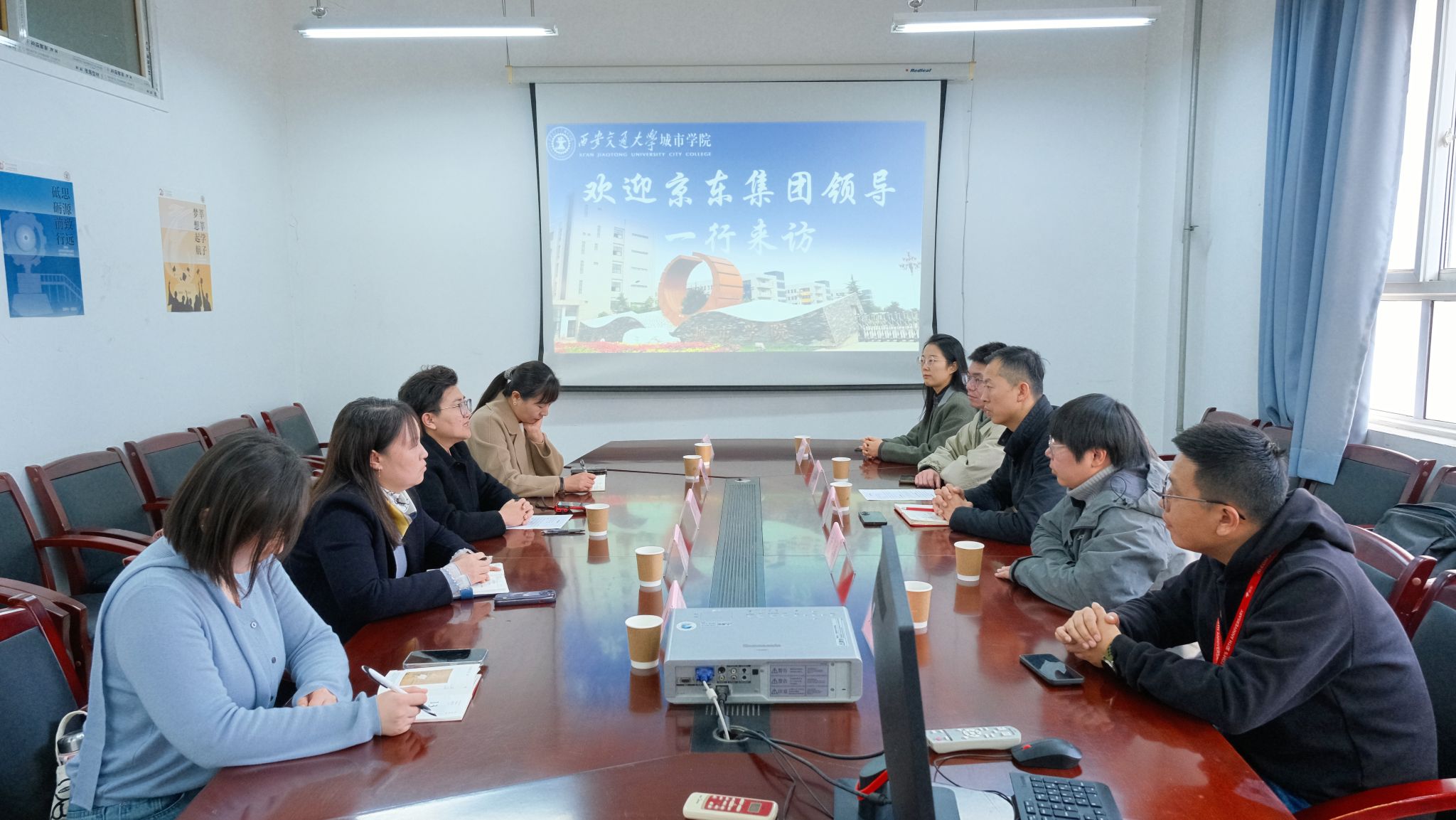 为深化产教融合、拓宽就业渠道,搭建校企人才供需精准对接桥梁,11月13日,经济与管理学院与京东集团正式启动校企合作并联合举办2026“新锐之星”专场招聘活动。京东集团校企合作部西北区负责人白光泽,京东物流集团陕西省区仓储业务人资经理许震威、黄仕锋、陈时杰,终端业务人资经理王甜,经济与管理学院副院长王旭、白丹,院长助理刘健,团工委书记柯智航及辅导员蒋美一帆共同出席活动,学院大四学子踊跃参与。