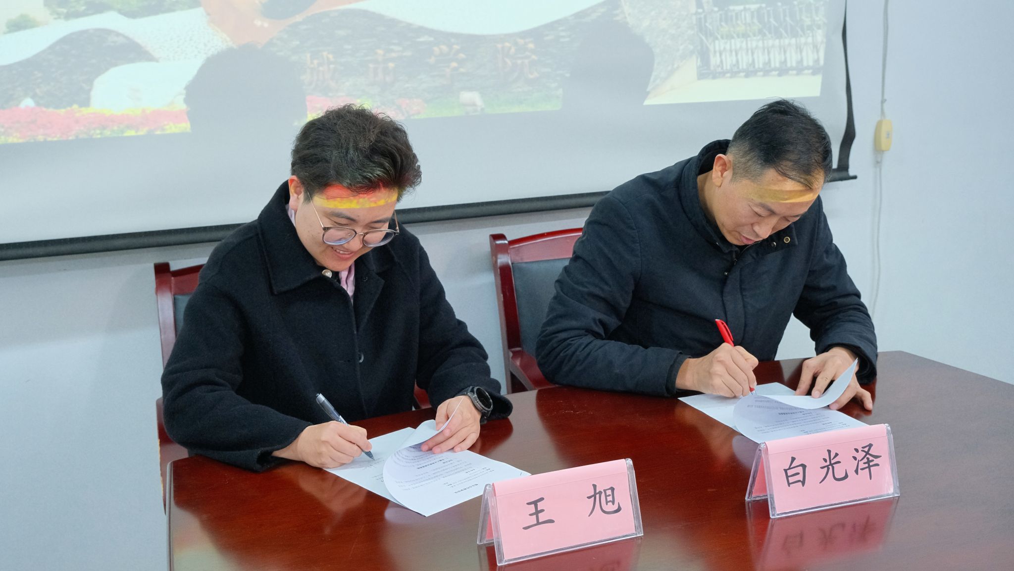 校企双方围绕人才联合培养、实习基地建设、就业资源共享等核心议题展开深度研讨,达成多项合作共识。双方代表白光泽、王旭现场签订校企合作协议,标志着彼此建立起长期稳定的战略合作伙伴关系。未来,双方将依托各自资源优势,探索产学研协同育人新模式,助力学生提升实践能力,为企业输送高素质应用型人才。
