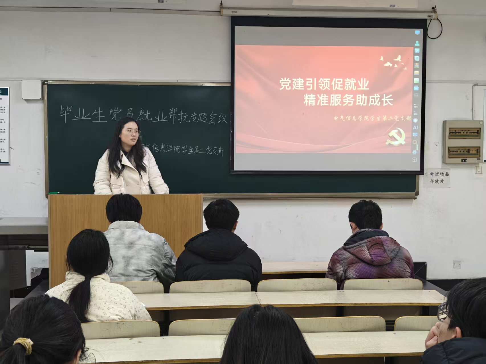 为促进2026届毕业生党员高质量就业,充分发挥基层党组织战斗堡垒作用与党员先锋模范作用,11月21日,电气信息学院学生第二党支部在教学楼B319召开毕业生党员就业帮扶专题会议,会议由党支部书记王玮主持,2026届全体毕业生党员参会。