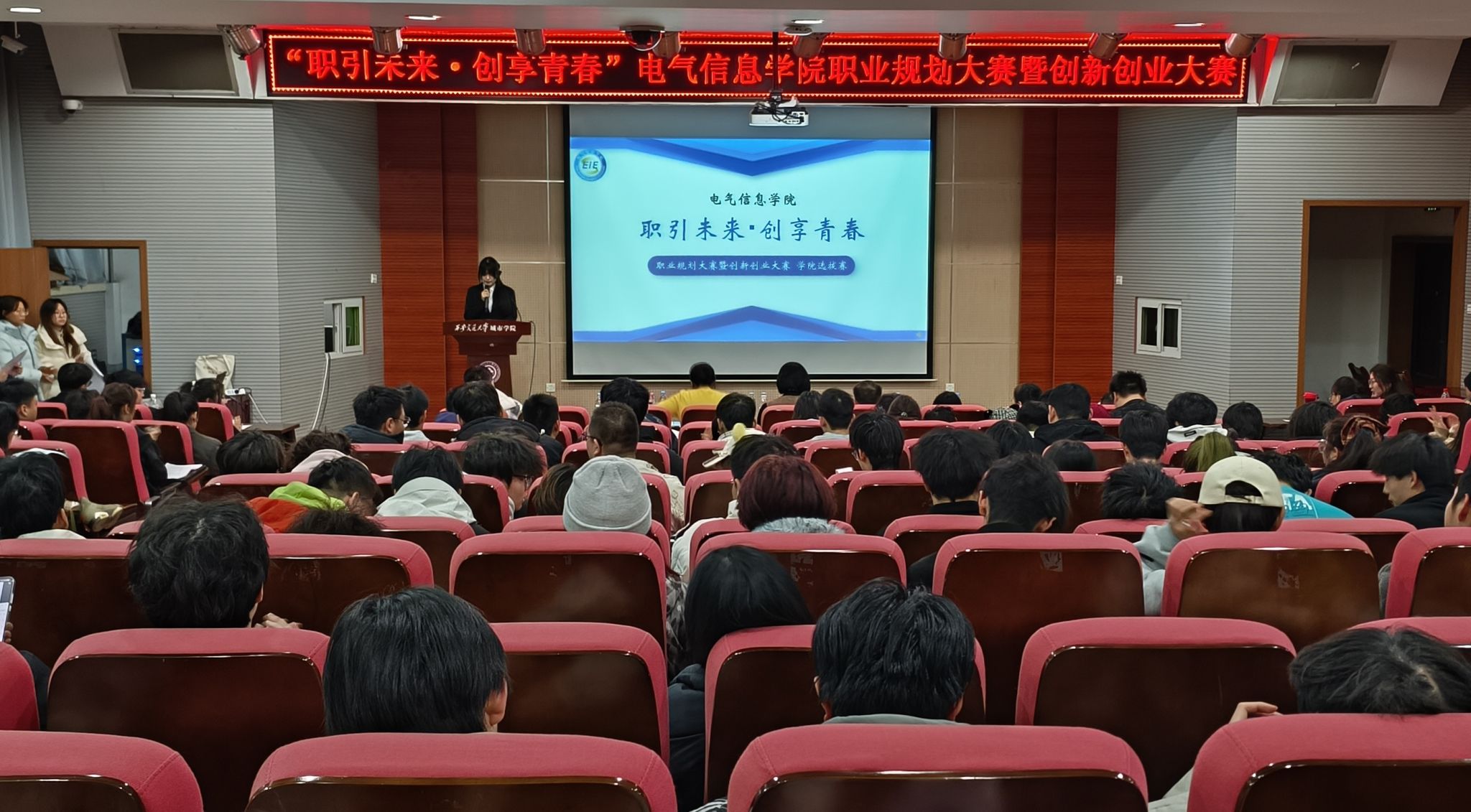 12月11日,“职引未来・创享青春”电气信息学院职业规划大赛暨创新创业大赛举办。电气信息学院院长助理郭华、电气信息学院院长助理兼学生工作负责人以及学院全体辅导员参加了本次活动。学院专业教师代表担任评委,各年级学生代表到场观摩学习。