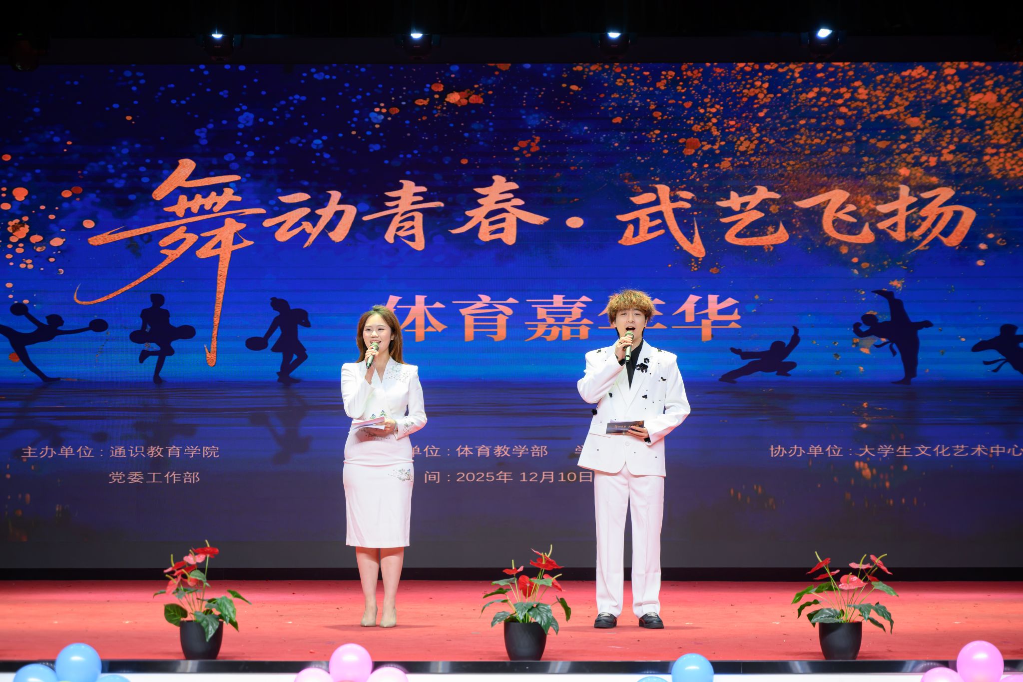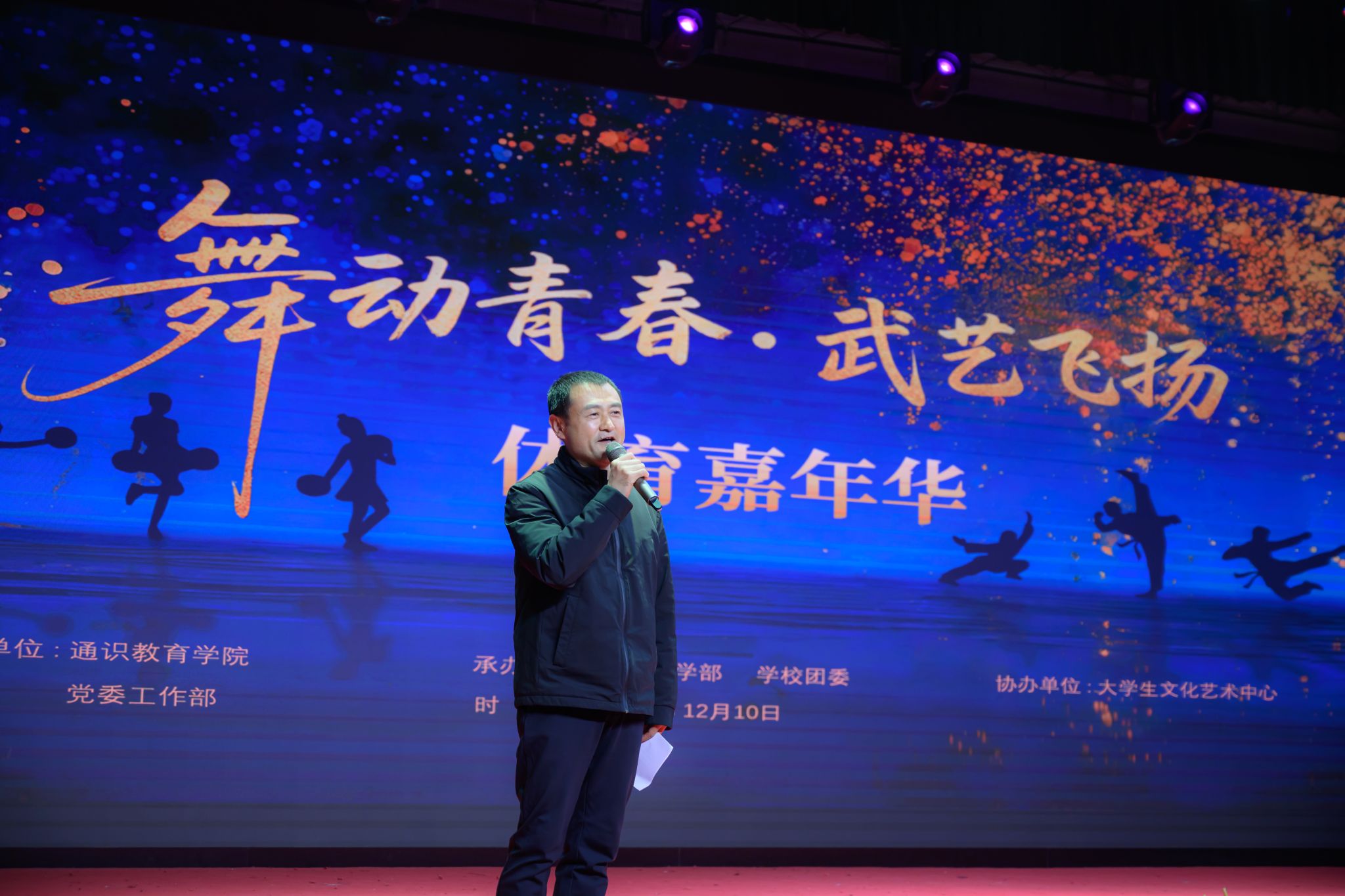 当动感舞步邂逅刚劲拳脚,当青春热血碰撞体育精神,一场文体交融的盛宴燃动校园。12月10日晚,“舞动青春·武艺飞扬”体育嘉年华晚会在大学生活动中心落下帷幕。校党委副书记、副校长陈书荣,副校长朱旭,副校长岳华海,校长助理、行政人事部部长姬志国,校长助理、财务处处长马江涛,部分职能部门及二级学院负责人、师生代表参加活动。