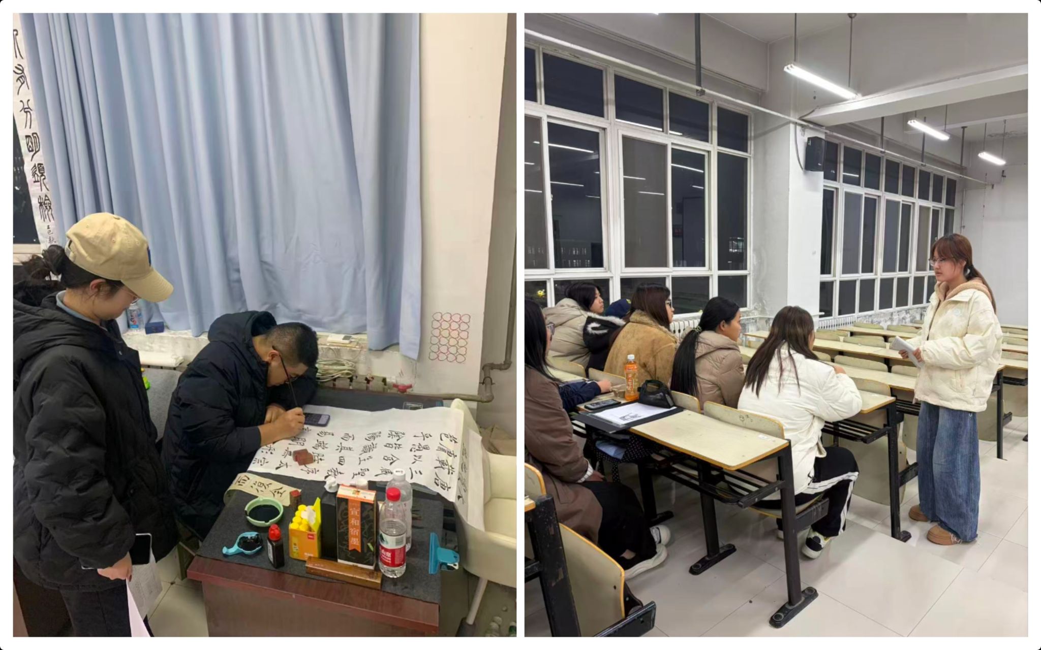 活动开展前,党支部深入调研低年级学业需求,精心选拔专业成绩突出、复习经验丰富的高年级党员,采取“一人一班”结对模式。针对艺术类专业考核特点,党员同学们提前整理《艺术概论》《素描基础》等核心课程的知识要点,并结合绘画、设计等实践类科目,通过现场示范、技巧讲解等形式,帮助低年级同学优化期末作品创作。