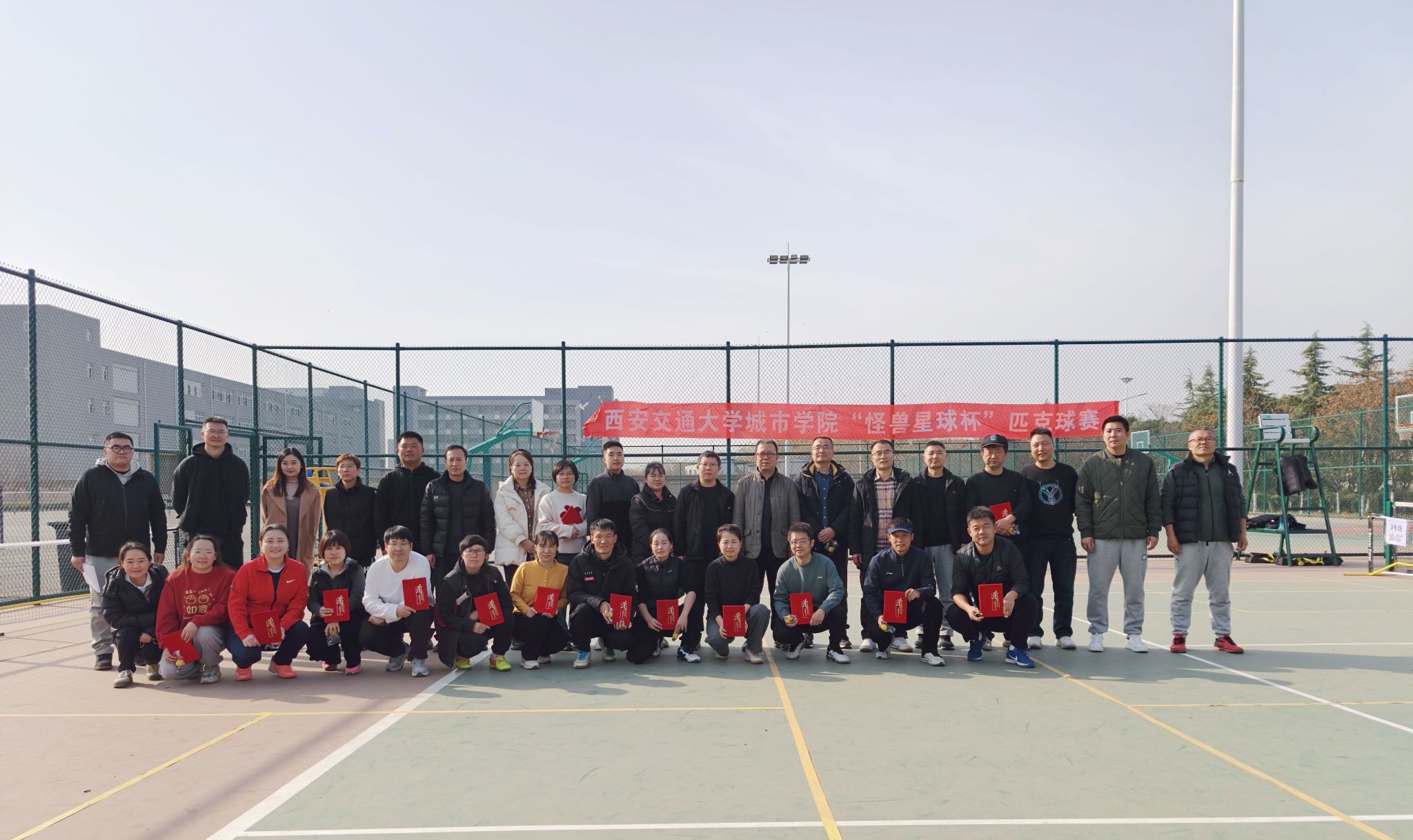 为期三天的西安交通大学城市学院首届“怪兽星球杯” 教工匹克球交流赛在学校匹克球场收官。本次赛事由校工会与通识教育学院体育教学部联合主办,校匹克球社团提供赛事保障,比赛为全校在职教职工搭建了切磋球技、交流互动的平台。