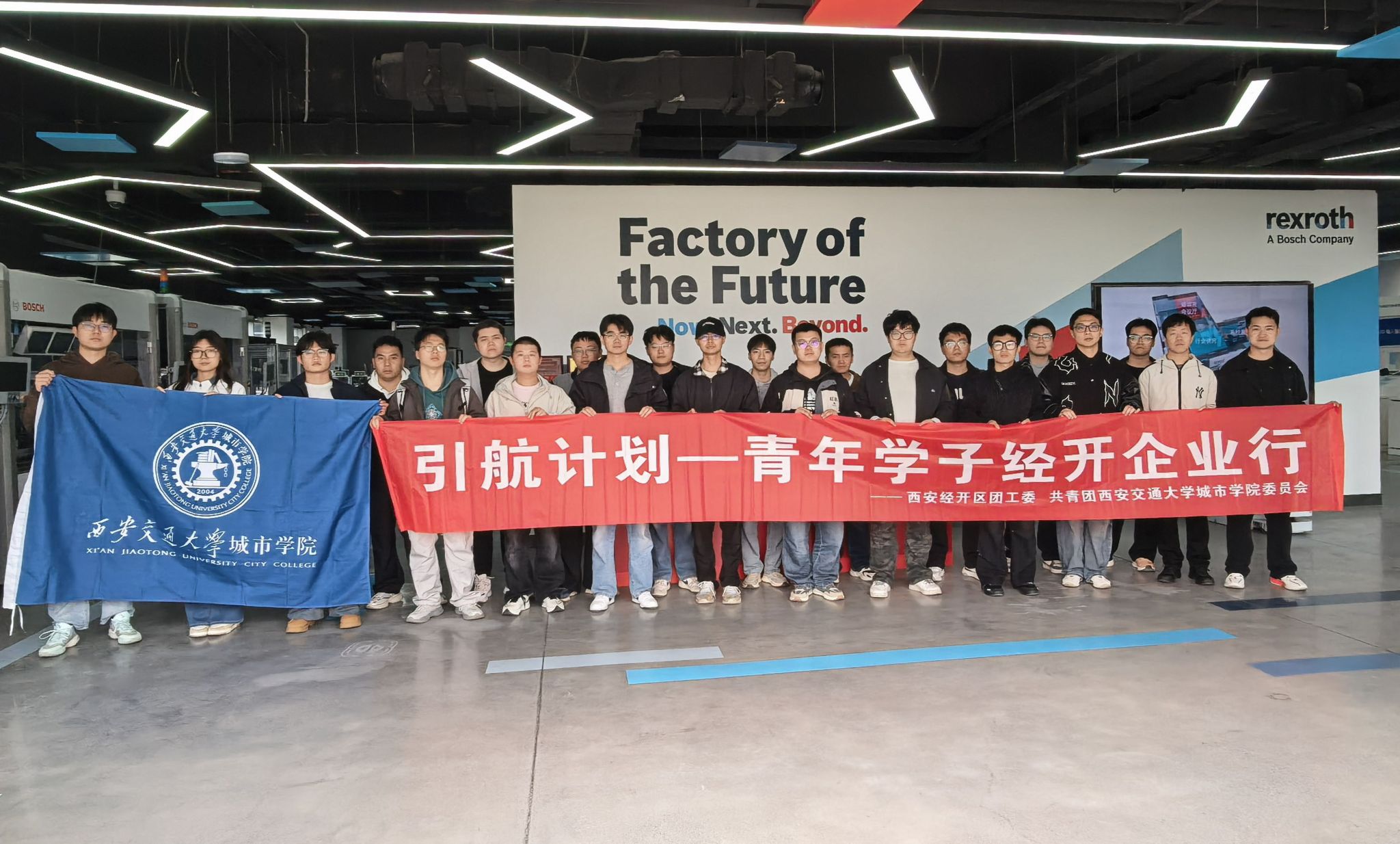 为深化校地企协同育人机制,扎实推进访企拓岗促就业专项行动,助力学子精准对接产业前沿技术与优质就业岗位,3月25日,经开区团工委联合学校团委共同开展“引航计划—青年学子经开企业行”系列活动。智能制造与新能源学院师生代表走进博世力士乐(西安)电子传动与控制有限公司,实地探访企业发展脉络、精准对接人才需求、拓宽校企合作渠道,推动产学研深度融合走深走实、见行见效。