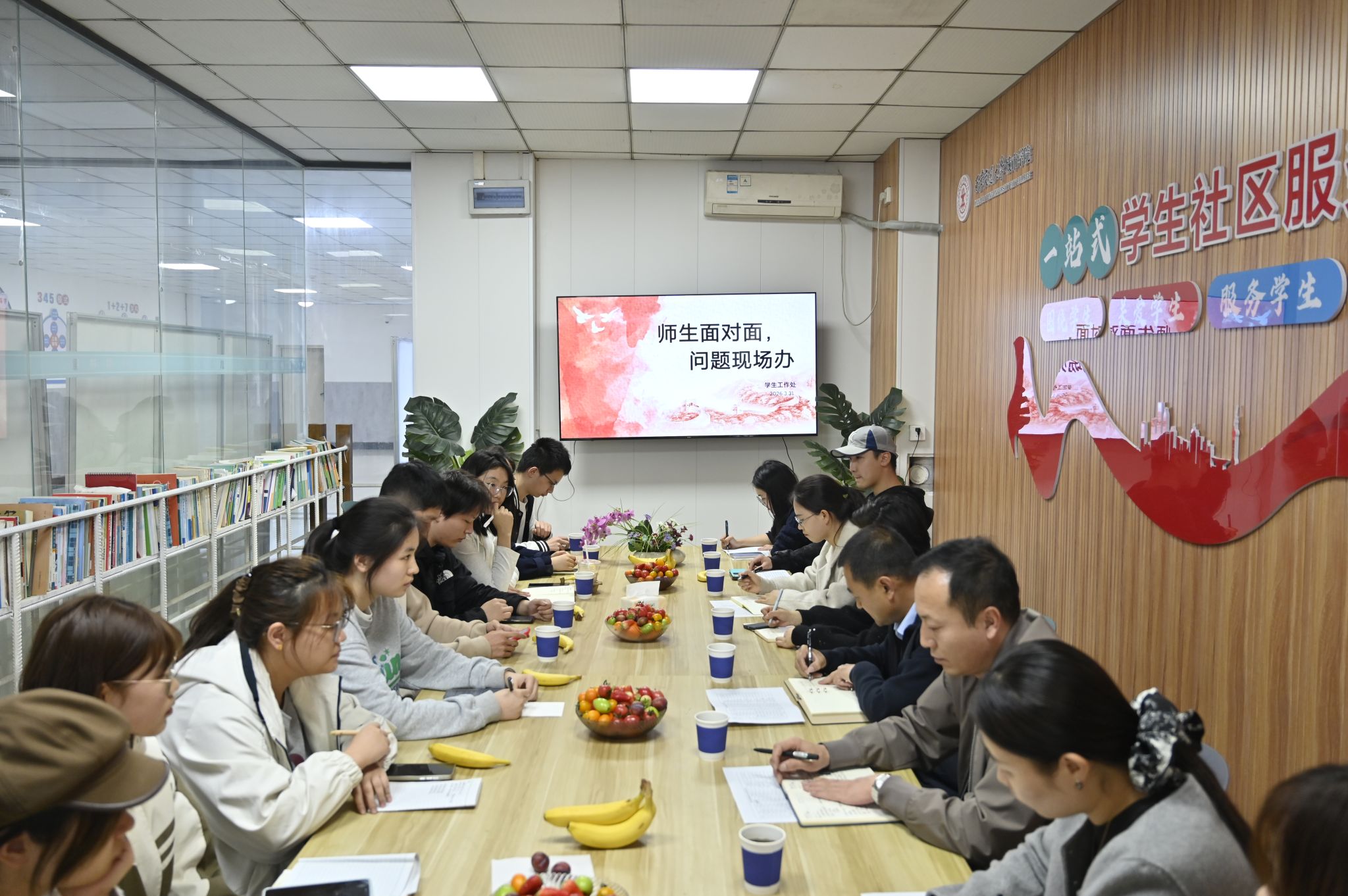 座谈会聚焦学生工作处日常教育管理、心理健康教育、大学生医保办理、征兵入伍政策、党员发展、学生资助、评奖评优、学生档案管理等工作展开深度交流。会上,学生代表围绕请销假流程优化、心理健康工作宣传、宿舍维修及反馈、医保报销细则、征兵政策细节、入党培养考察等方面提出困惑与建议。