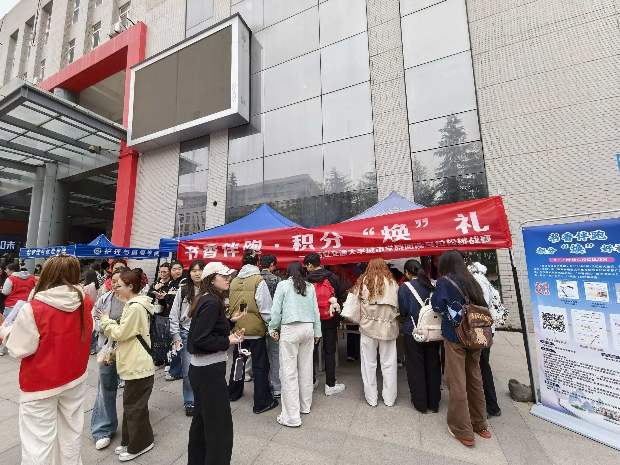 为深入贯彻落实《全民阅读促进条例》,迎接第31个世界读书日,营造浓郁校园书香氛围,4月2日,图书馆、档案馆联合党支部与经济与管理学院学生第一党支部联合举办“世界读书日|书香伴跑·积分‘焕’好礼——4·23阅读马拉松挑战赛”线下推广活动。