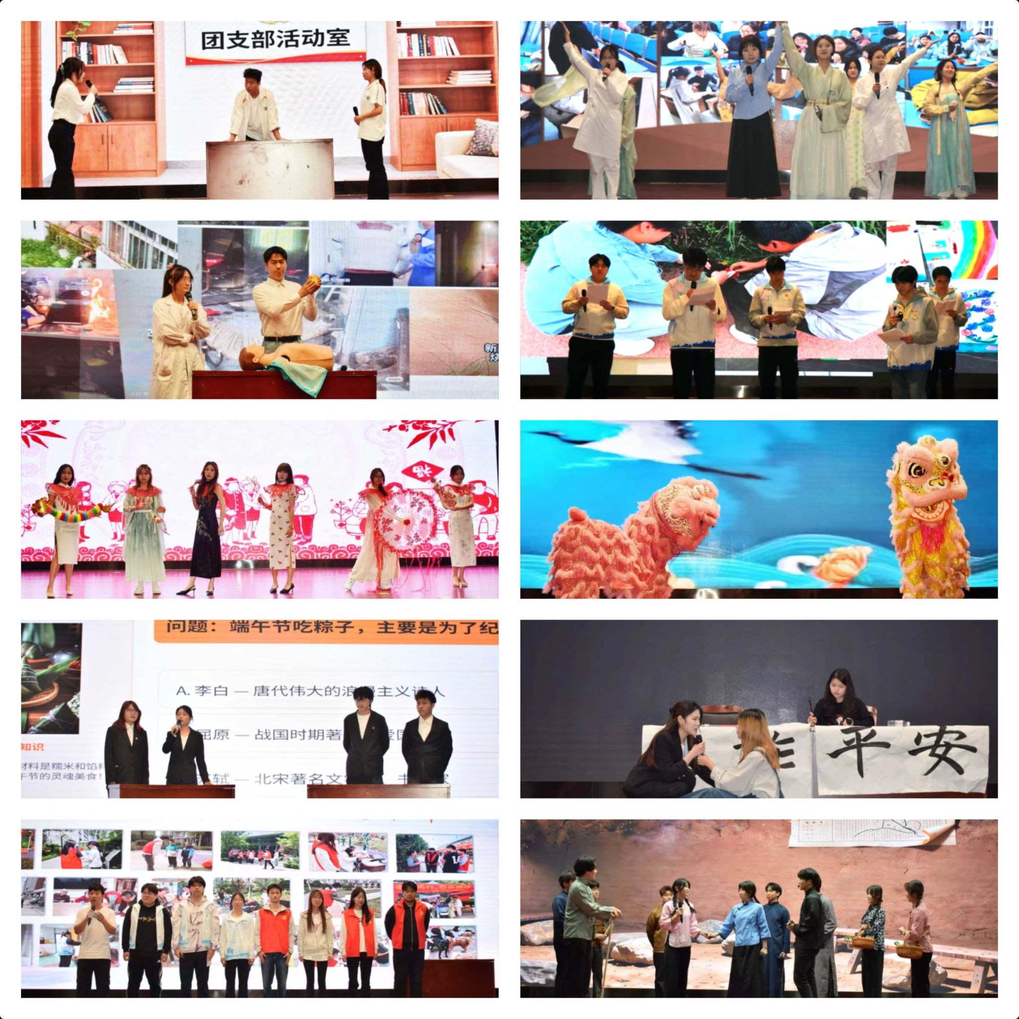 网媒2402团支部深度融合网络与新媒体专业特色,精心策划系列沉浸式红色主题活动。通过情景短剧、历史场景复原等沉浸式演绎,带领团员穿越时空感悟革命初心。人力2401团支部创新融入非遗走秀与舞狮表演,打造沉浸式非遗体验团日活动,让千年非遗在新时代绽放青春光彩。护理2403团支部秉持“医者仁心、红色领航”理念,以中草药角色扮演为核心展示形式,打造特色团日活动。电气2501团支部以“行走的思政课”为载体,积极开展红色研学实践教育,从百年党史中汲取信仰力量。会计2404团支部立足校园、服务师生,将红色安全理念融入校园治理实践。书法2401团支部以笔墨为媒、以红色为魂,将书法艺术与红色文化深度融合,让墨香浸润初心。机器人2401团支部立足工科专业优势,将红色精神融入科创实践。软件2401团支部创新思政教育形式,以文化竞赛为载体深化思想引领。土木2501团支部深耕红色历史、深挖精神内涵,以青春之我续写时代华章。