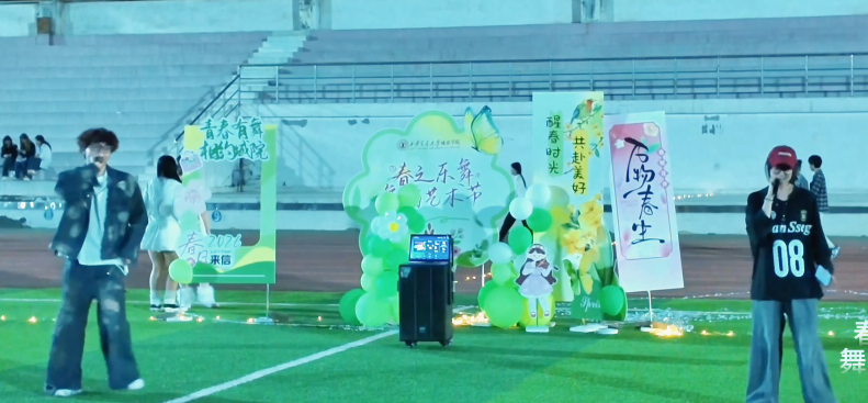 下半场展演的节目依旧精彩纷呈,《don’t know what to do》的大气舒展、《春律・Dance with me》中春日意象与舞蹈语言的巧妙融合、《Armageddon》的强劲张力,以及压轴登场的舞蹈串烧,将不同风格的舞蹈元素碰撞融合,展现了城院学子多元的艺术表达与创新能力。整场演出高潮迭起,“现场惊现神秘嘉宾”的环节更是让惊喜不断,欢呼声与荧光棒的光影交织,成为春日校园里最动人的风景。