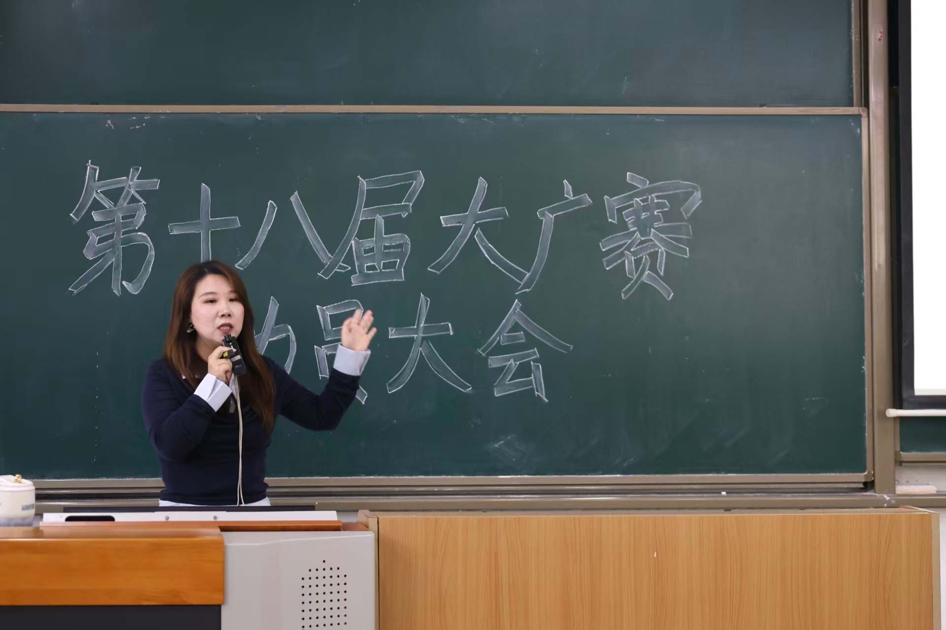 大广赛总负责教师焦铭对赛事进行全方位解读,她围绕第18届大广赛规则、命题类型、作品类别、参赛流程及关键时间节点进行系统讲解,并结合行业趋势,鼓励学生正确运用AI辅助工具拓宽创作视野。