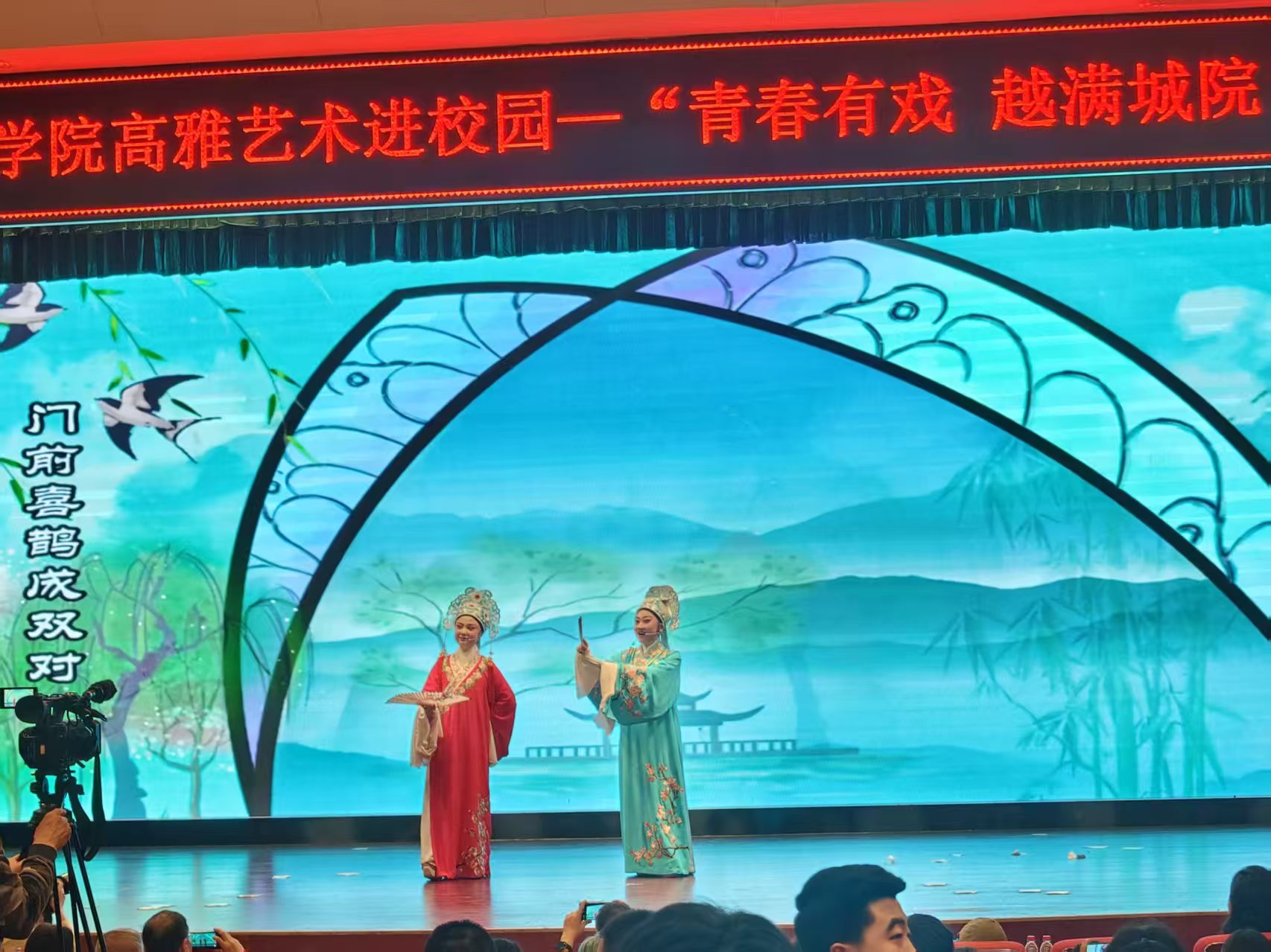 整场演出曲目编排精巧、层次丰富,名家新秀同台献艺,唱腔婉转悠扬,扮相清雅古典,既还原了传统越剧的古韵风骨,又贴合当代青年的审美喜好,让在场师生沉浸式领略了中华戏曲非遗艺术的博大精深。