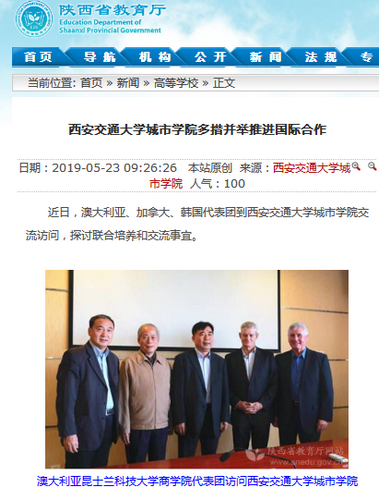 近日,陕西省教育厅报道了我院多措并举推进国际合作相关内容。