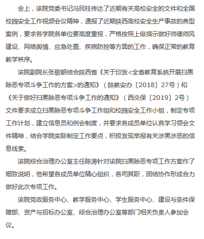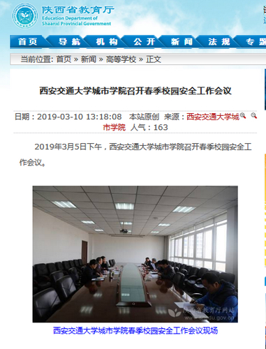 近日,陕西省教育厅门户网站对我院春季校园安全工作会议进行了报道。