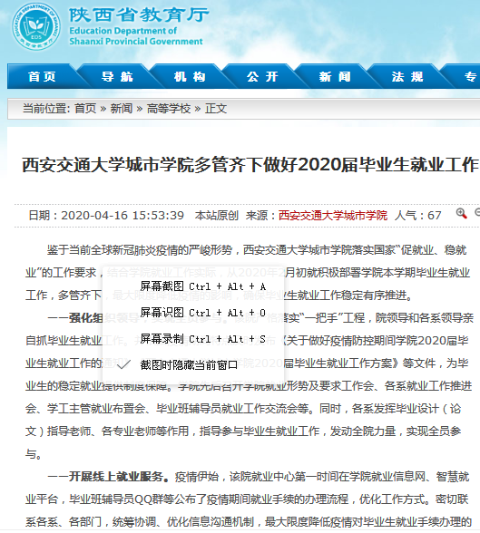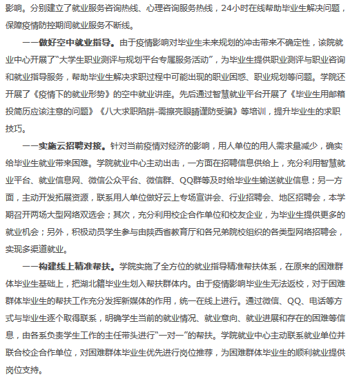 近日,陕西省教育厅报道了我院多管齐下做好2020届毕业生就业工作。