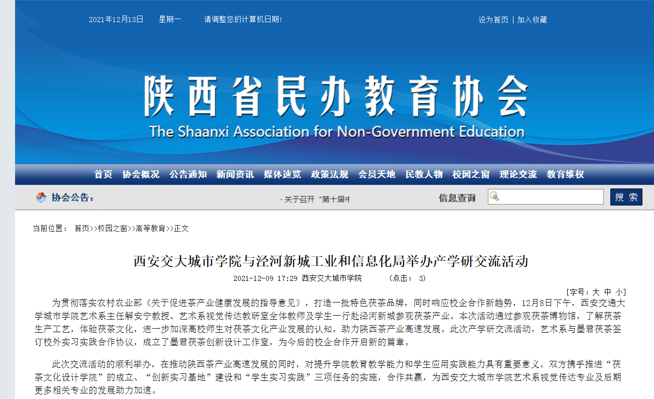 近日,陕西省民办教育协会报道了西安交大城市学院与泾河新城工业和信息化局举办产学研交流活动,具体链接及内容如下: