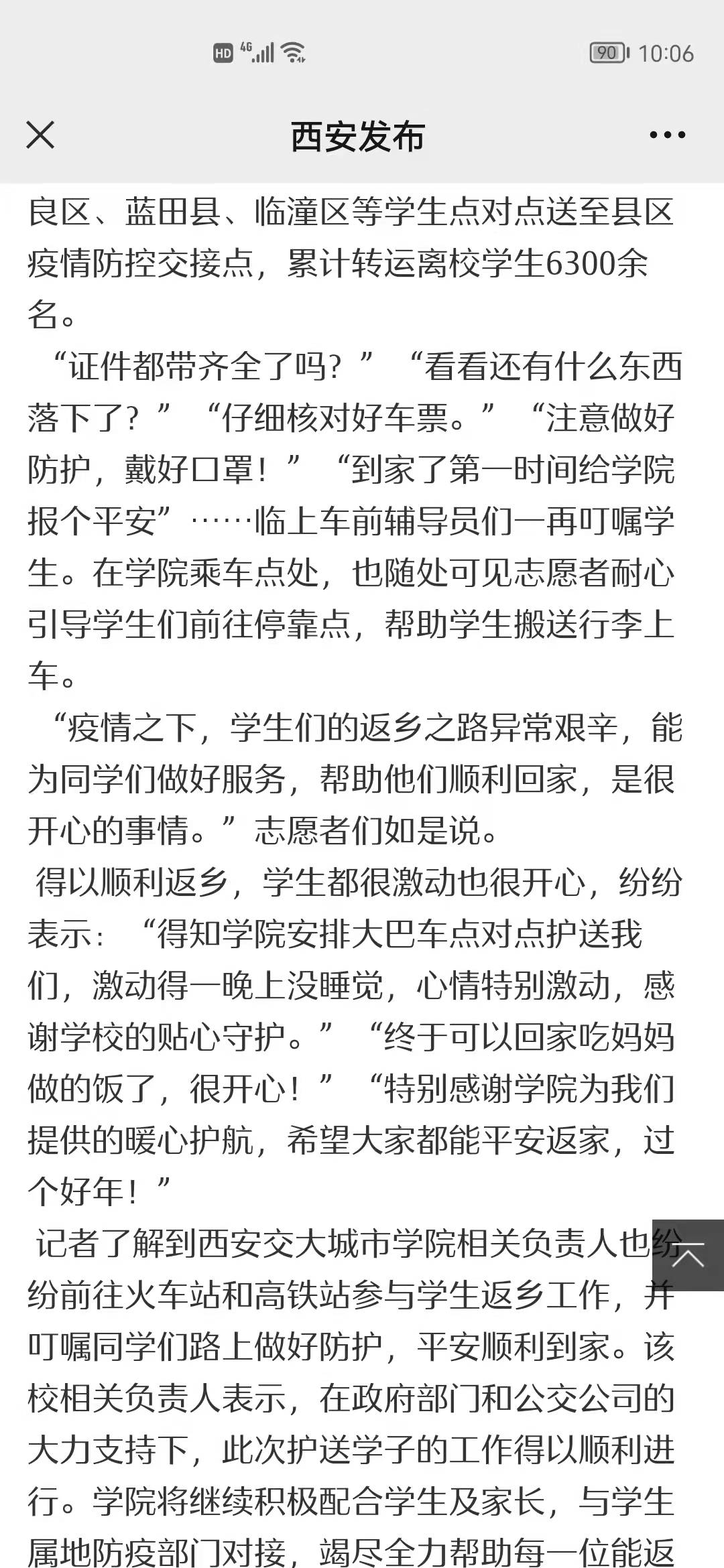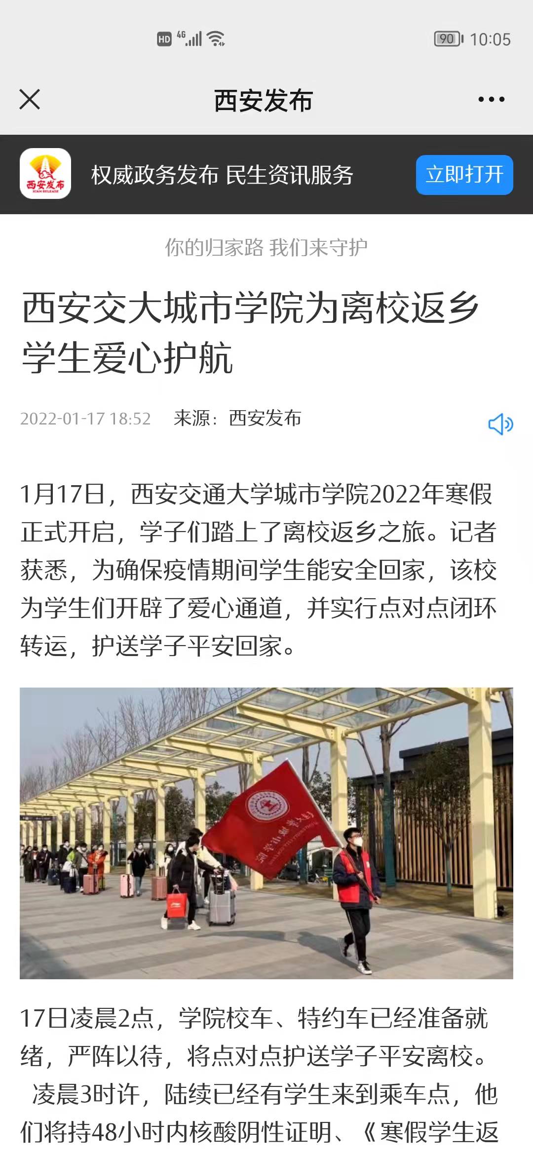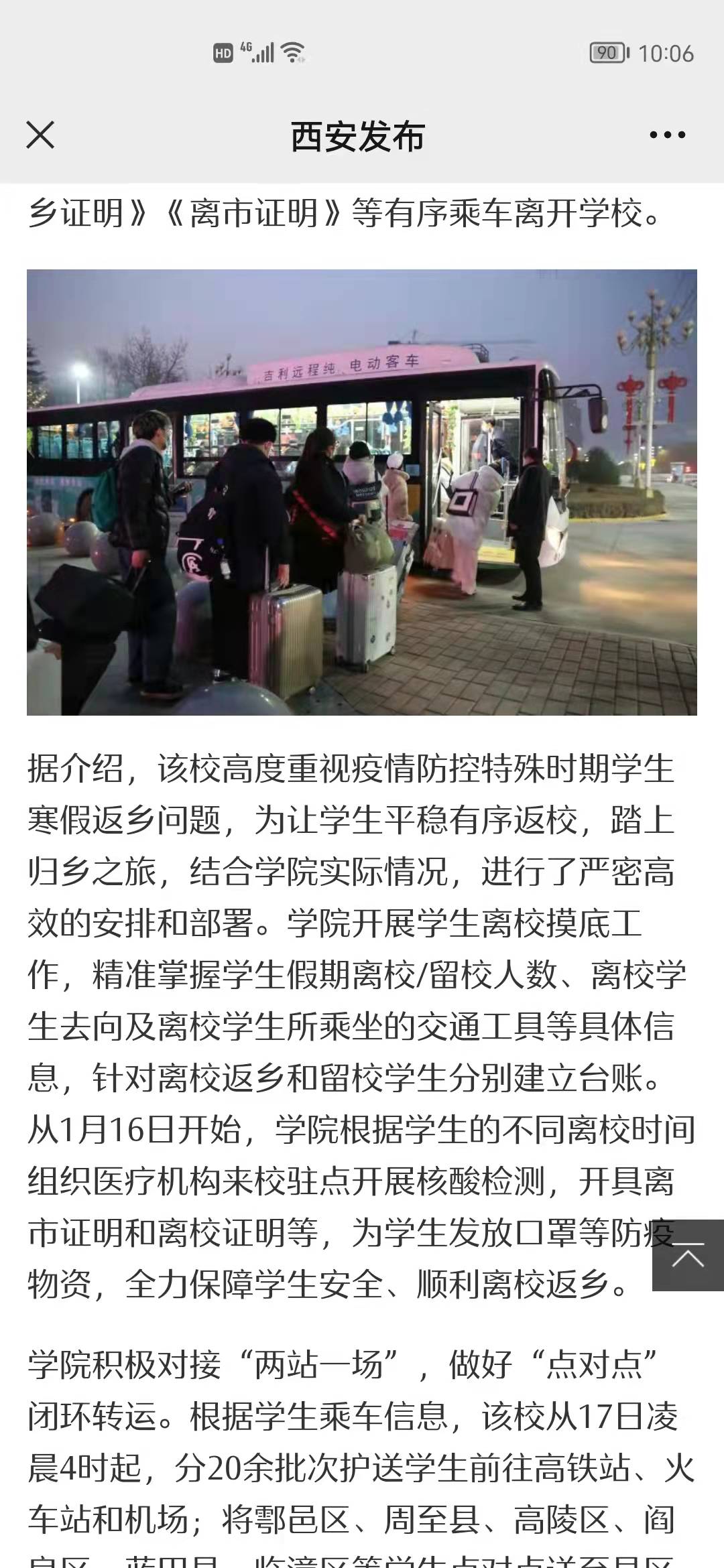 1月17日,西安发布报道了学院为离校返乡学生爱心护航的情况。具体链接及内容如下: