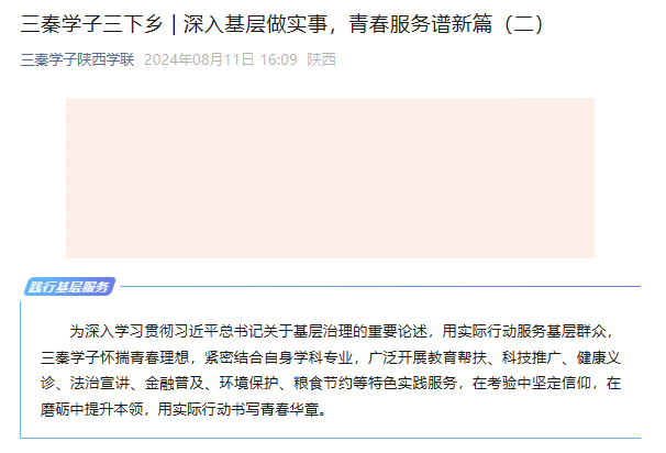 近日,三秦学子陕西学联对我校暑期社会实践进行了报道。