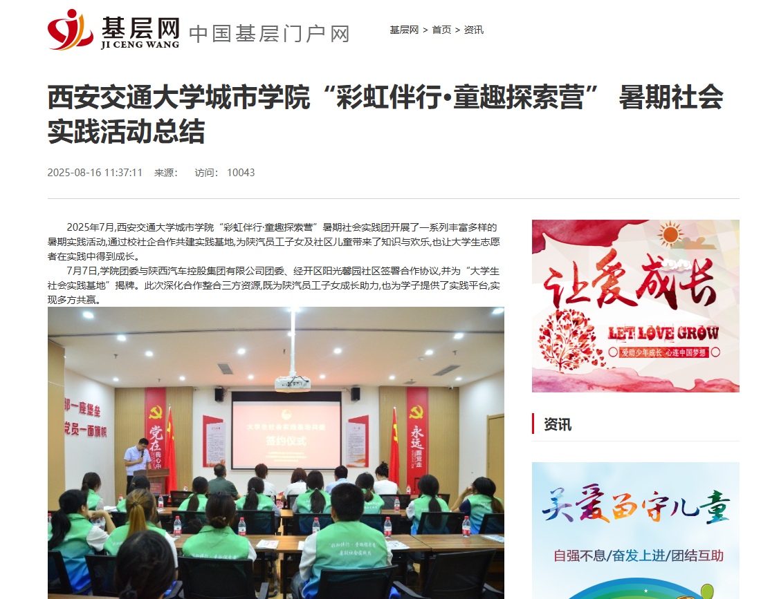 近日,基层网对我校学子暑期“三下乡”社会实践活动进行了报道。