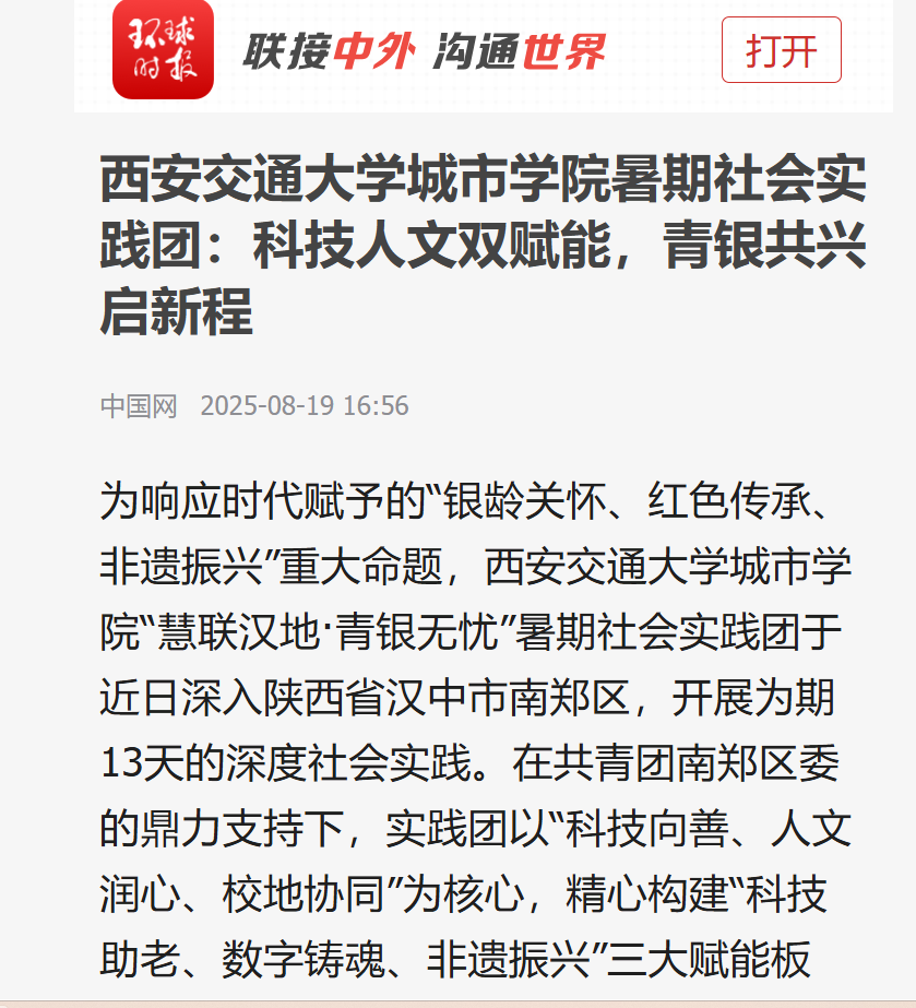 近日,环球时报对我校学子暑期“三下乡”社会实践活动进行了报道。