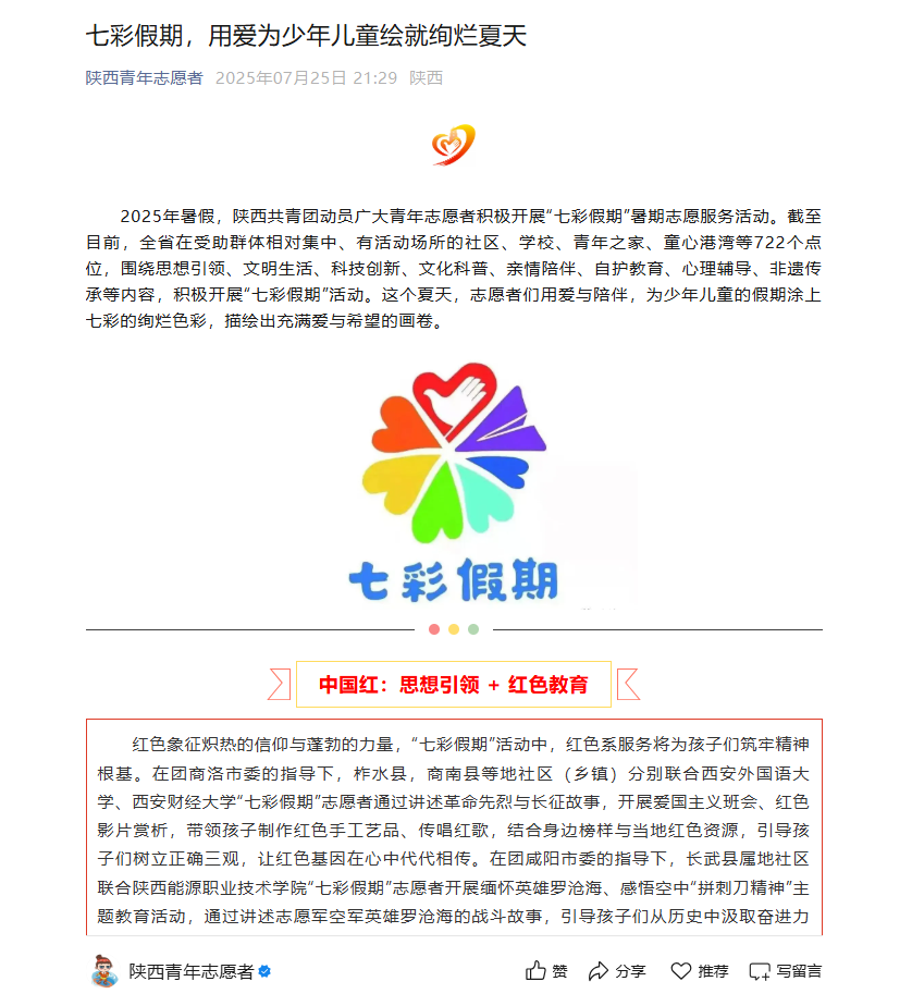 近日,陕西青年志愿者对我校学子暑期“三下乡”社会实践活动进行了报道。